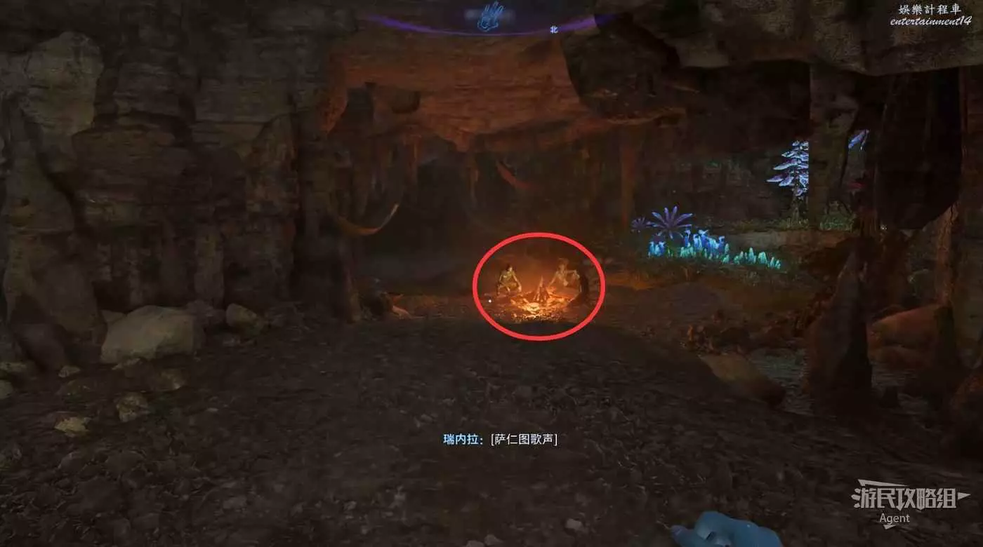 出門左拐進山洞,篝火旁見到朋友們,他們旁邊的籃子裡可以拿到深紅菇。