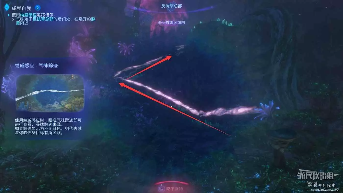 用納威感應查看周圍,找到發光的矢木叢,拿到條形材料可以製作箭矢。