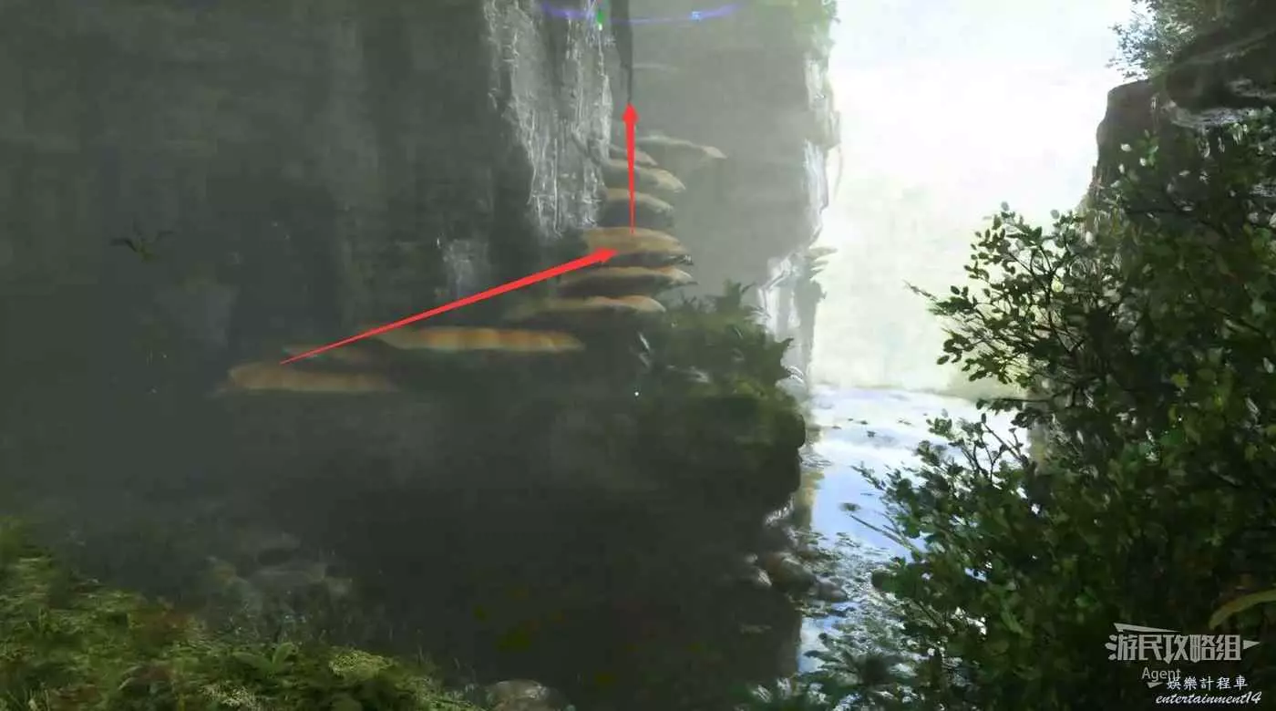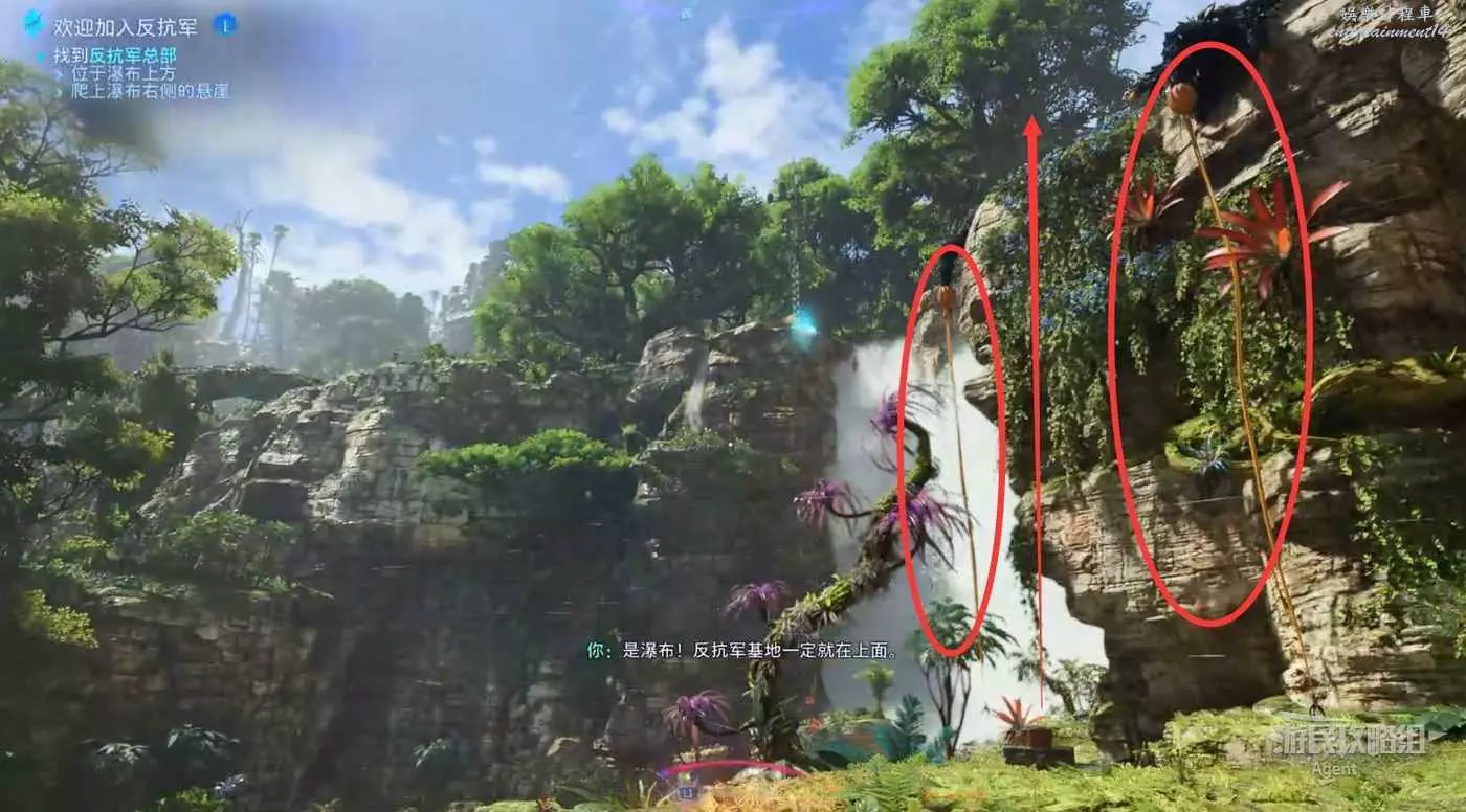 反抗軍總部位於瀑布上方,利用瀑布右側的升蔓爬上懸崖。