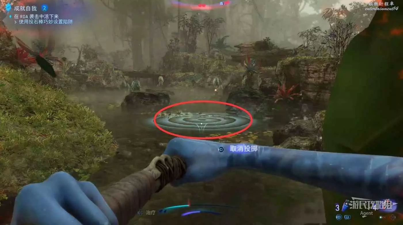 趕到研究站,獲得投石棒,用投石棒在地上設置陷阱,敵人一靠近就會爆炸。