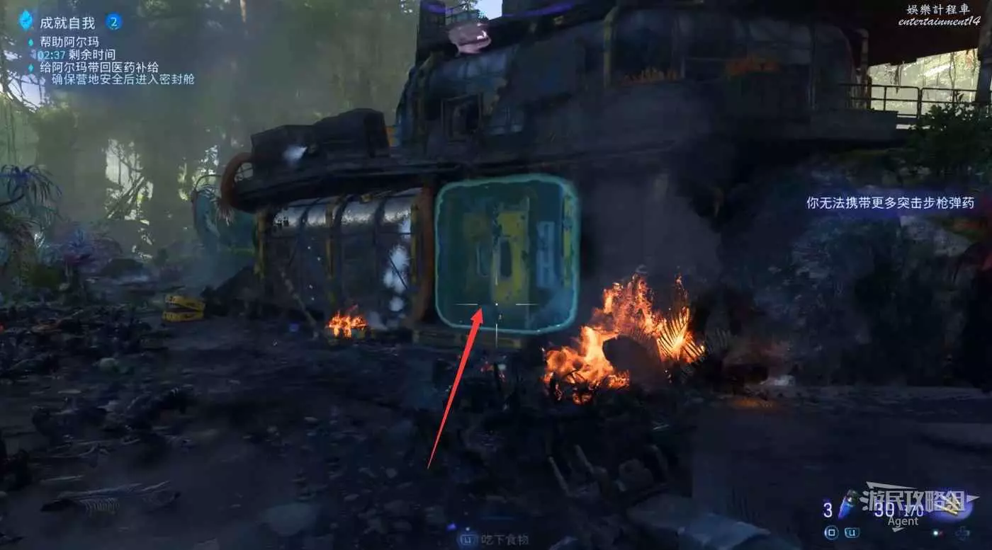 解決敵人後,進入密封艙。幹掉敵人機甲後,靠近機甲可以獲得突擊步槍彈藥補充。