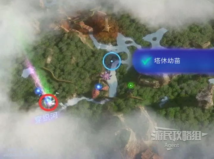 繼續往西前往主線目標的路上,穿織河三個字旁紫色光柱處有個塔休,獲得先祖技能“強制彈出”。