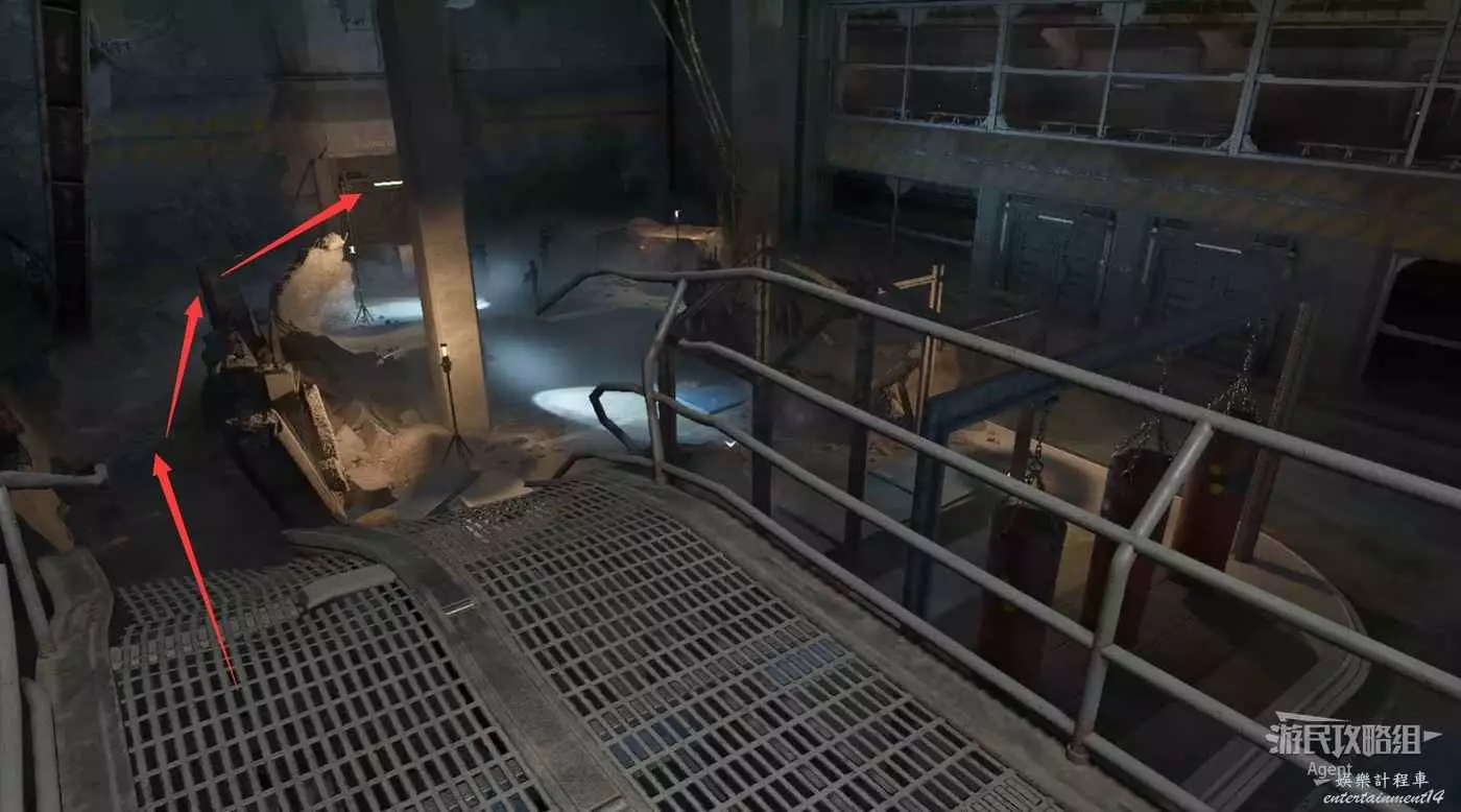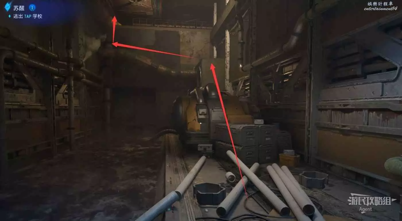 經過地下通道,走上樓梯,附近有敵人時蹲下別被發現。