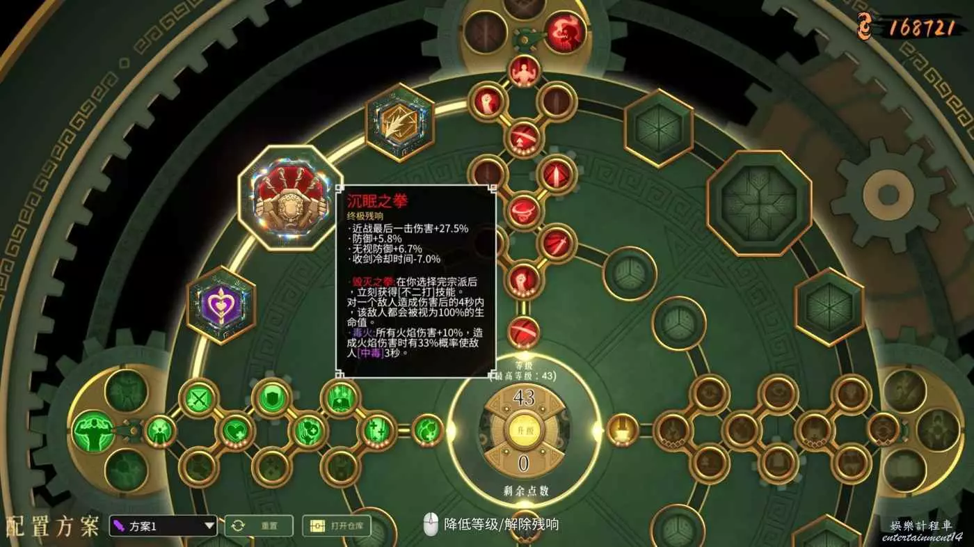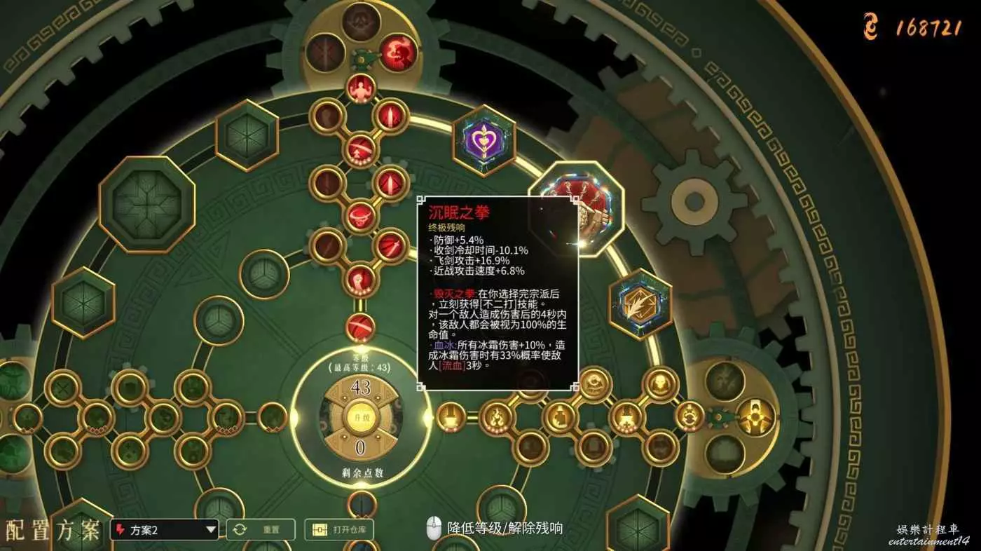 進入dlc2的內容後,有了新的天賦系統。開局聽說更新後有20點了。按先黃後綠的順序點。然後用雷1速通,刷見聞錄。覺得近戰不好打,也可以用火硝石酒2,或者先點亮藍用萬劍。除了終極殘響,其他殘響全部分解掉(這是點數大頭)。