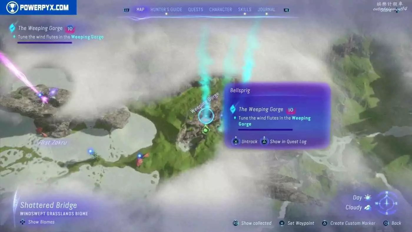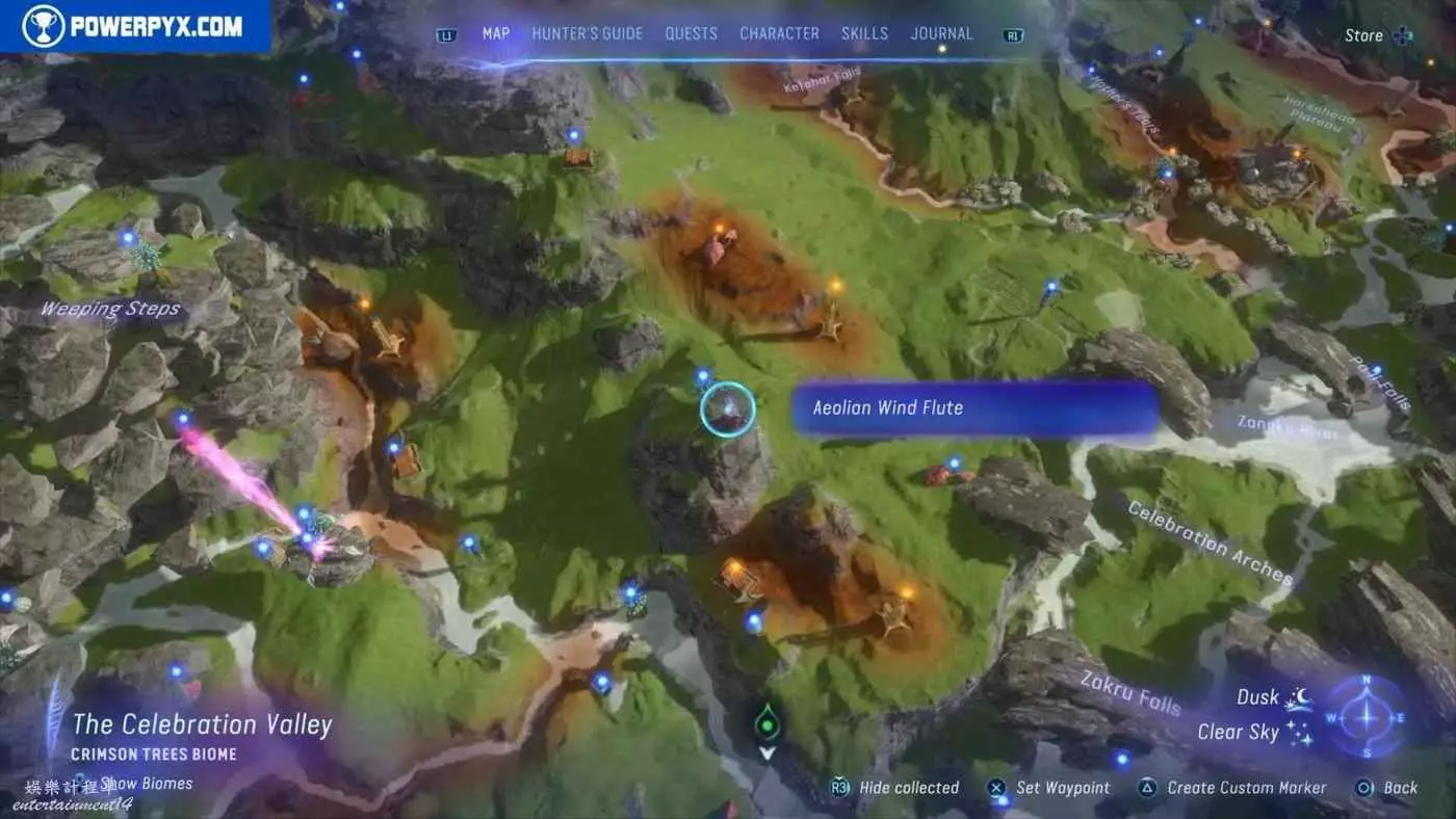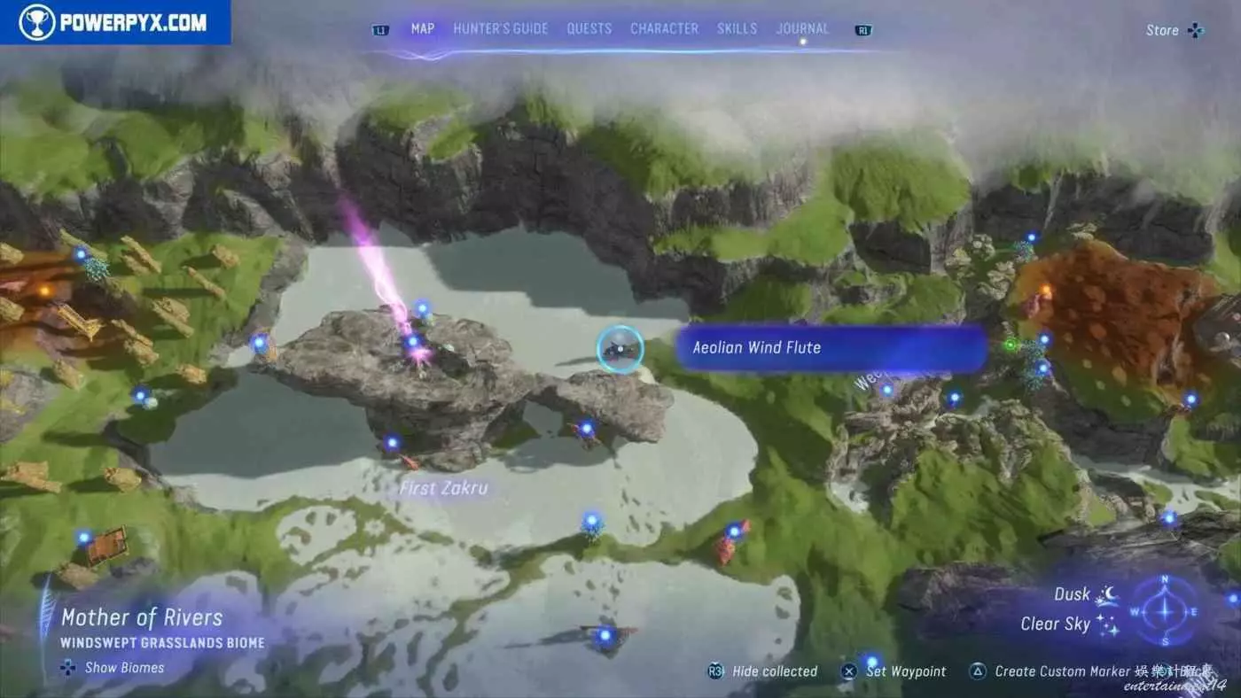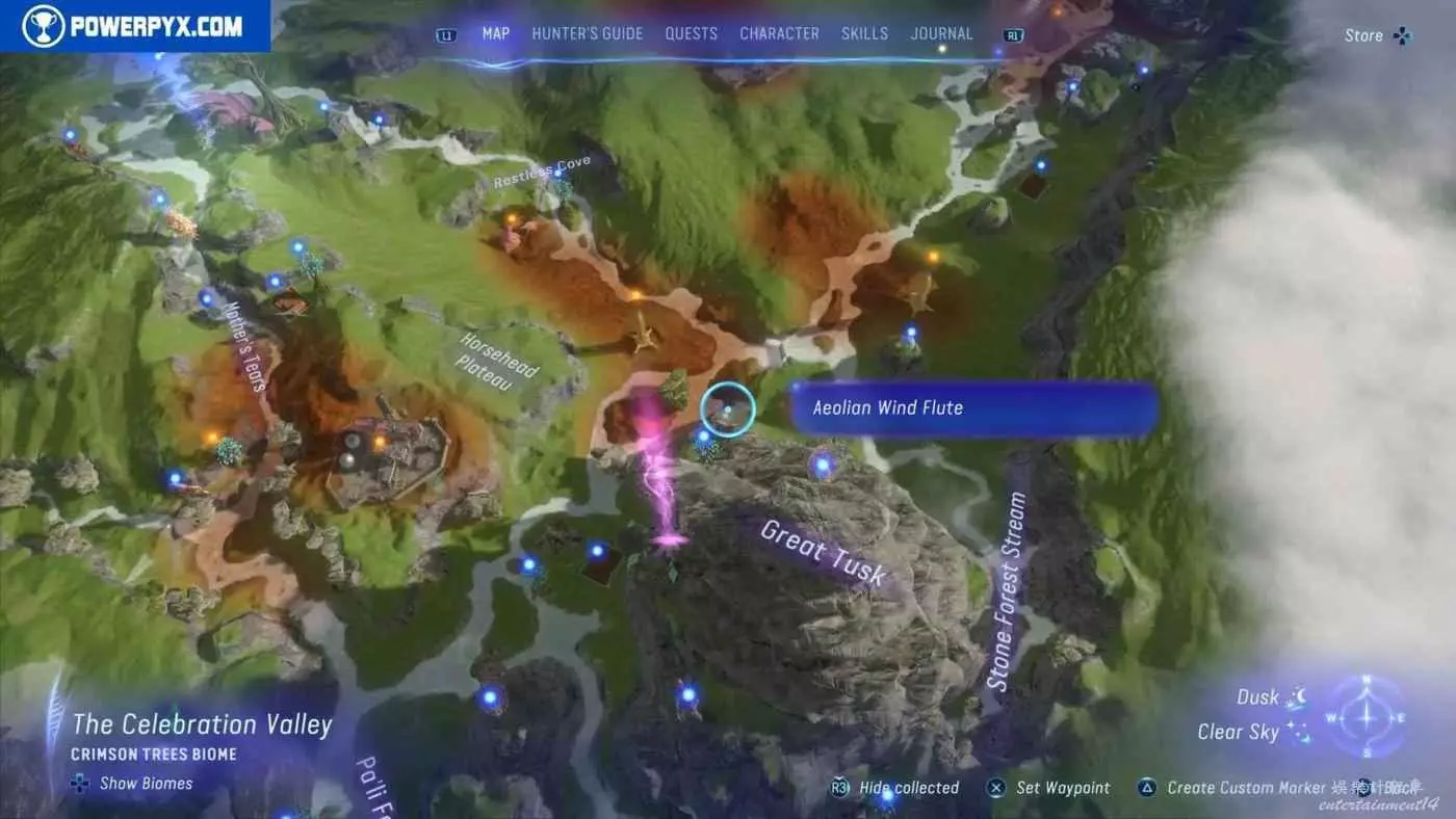 只需要與每個艾奧利安風笛所在位置的控制杆互動為其調音即可,所有的艾奧利安風笛都不用擔心漏掉,在通關主線後的開放世界依然可以前往其位置並為其調音。清除地圖迷霧時也會標記在地圖上,如果之前沒有靠近過,會顯示紫色標記,如果之前已經靠近過該位置則會顯示藍色標記,如果之前已經完成就會顯示綠色標記。其中4個與主線劇情相關的艾奧利安風笛不會在地圖上標記顯示,也不會在PS5獎盃列表中追蹤數量(只記錄開放世界中的13個),所有艾奧利安風笛都位於本作的第二個主要區域上層平原。