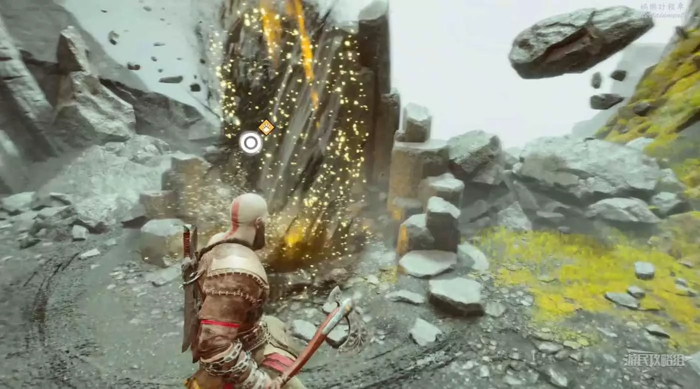 走到盡頭後向左轉,爬上高台可以找到一個金色的空間裂隙。