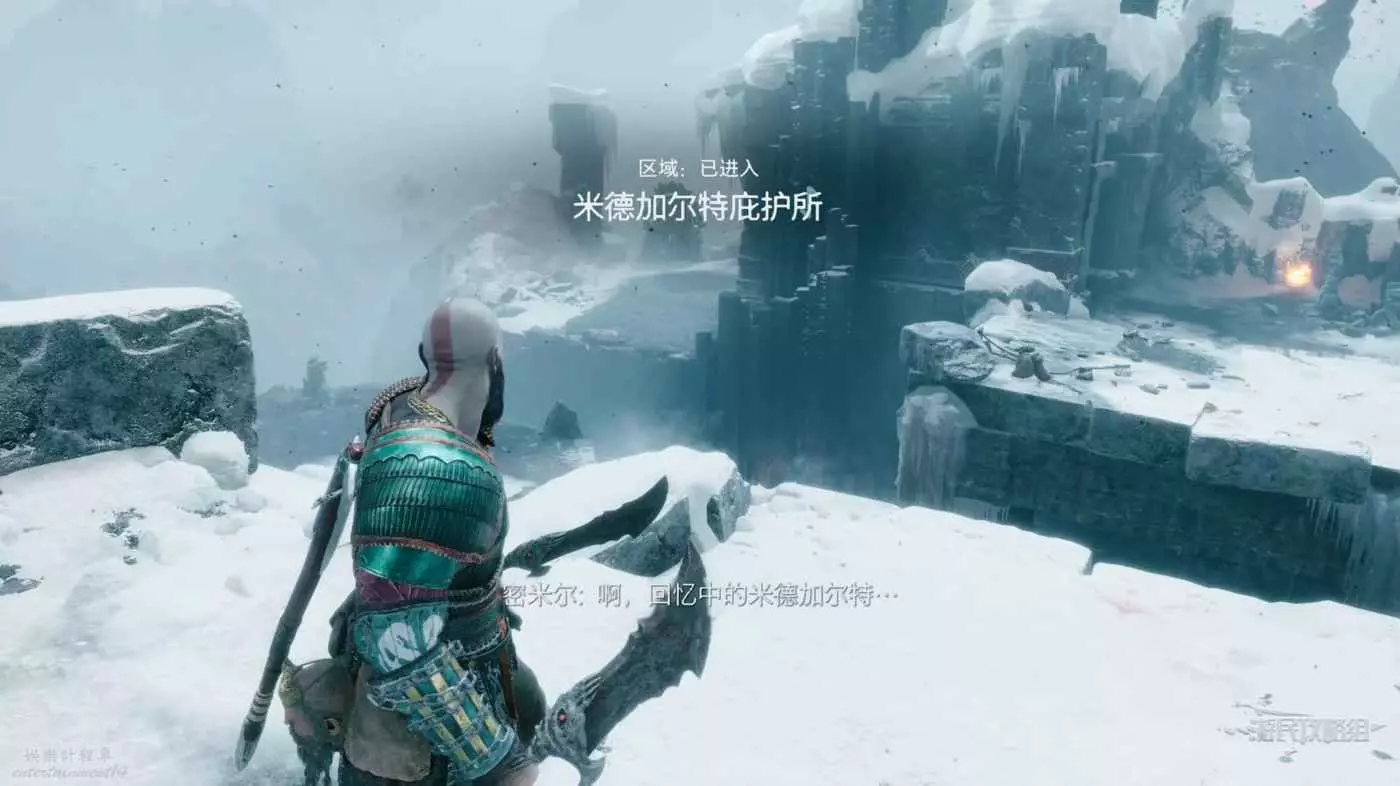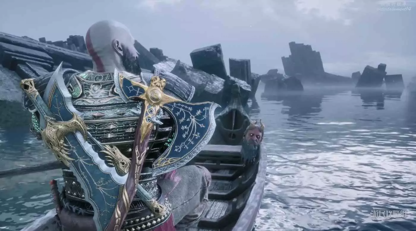遊戲開場後奎爺帶著密米爾向著未知目的地划船,從倆人的對話中可以得知此次的目的地是英靈殿。