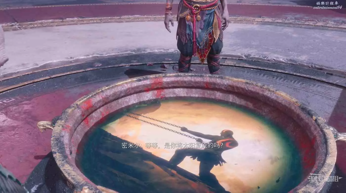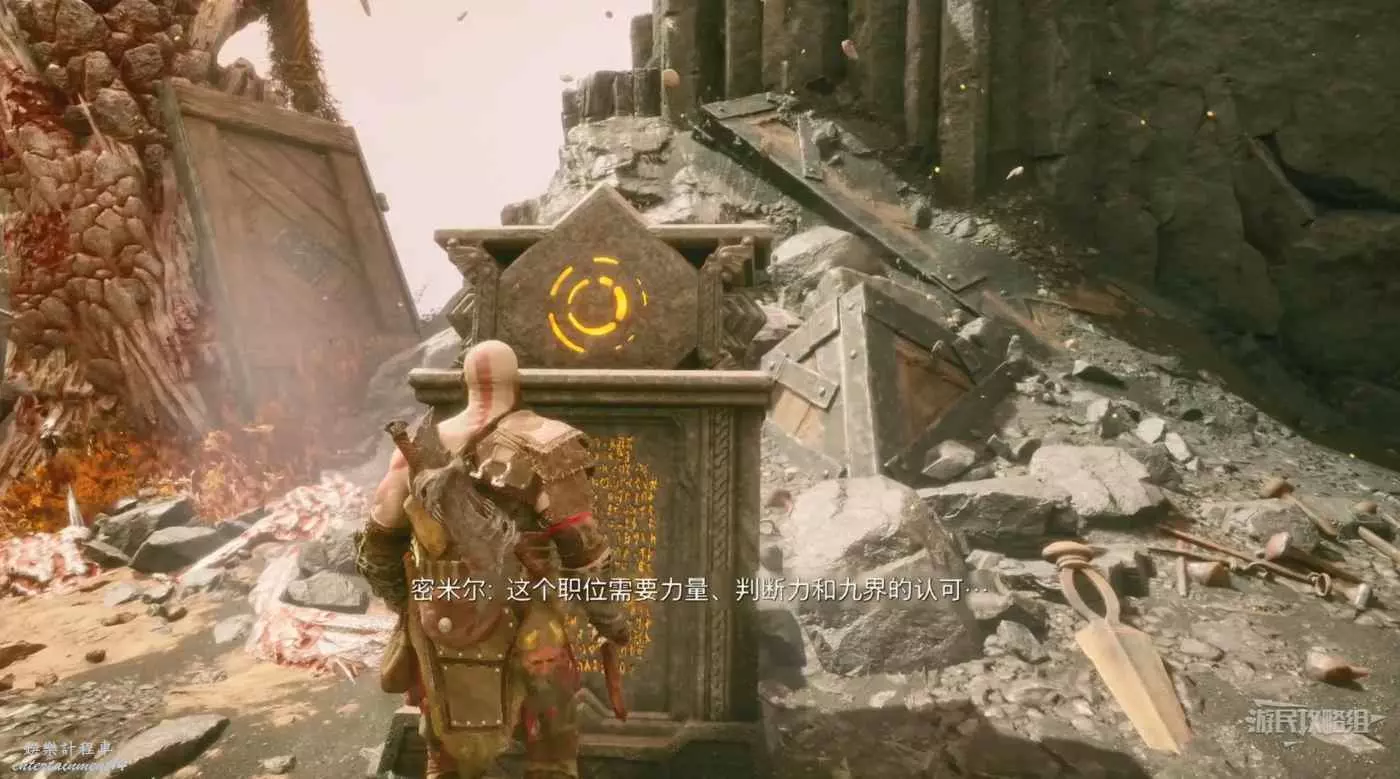 接著與牢籠互動將牢籠推到火坑處,開啟機關獻祭赫利俄斯,此時赫利俄斯突然變回了密米爾。