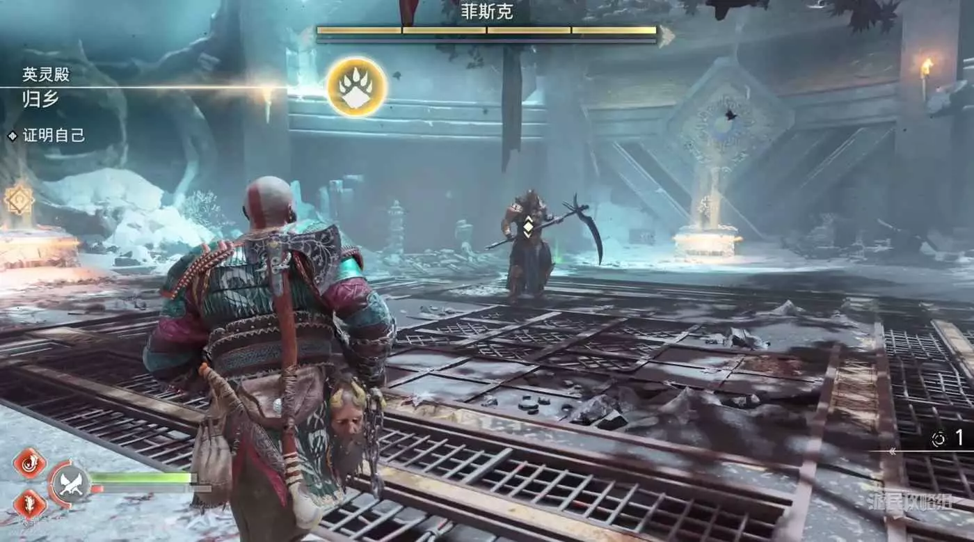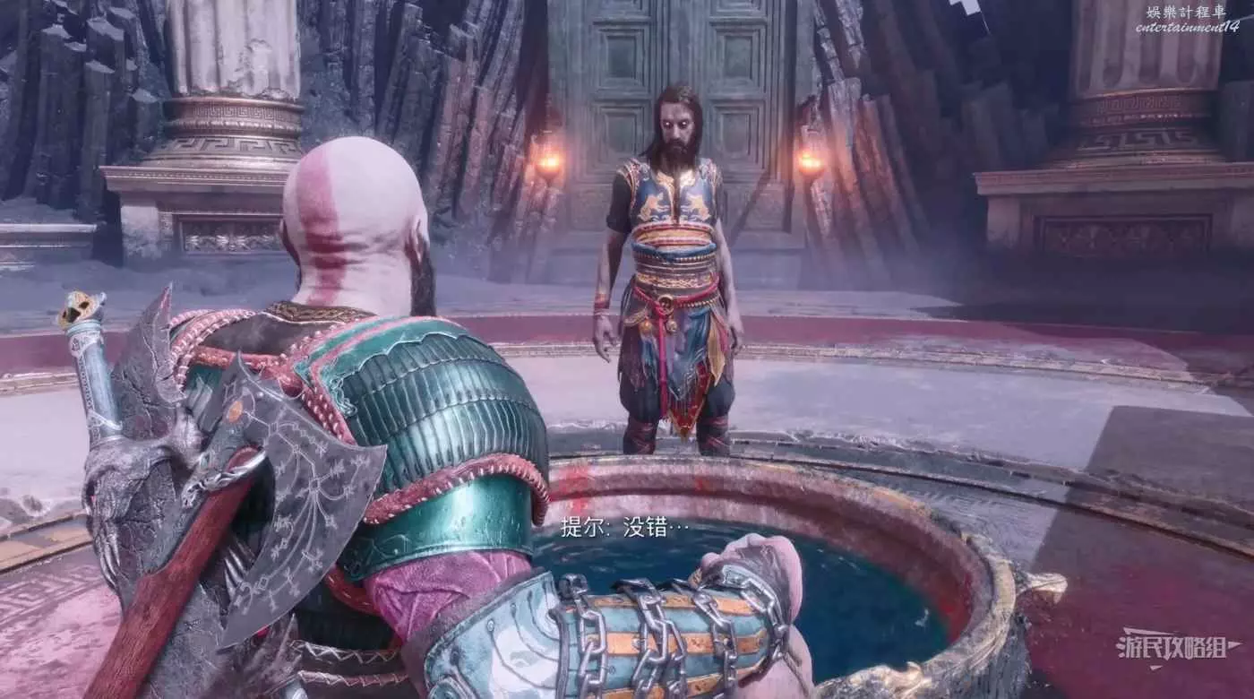 擊敗提爾後,與提爾後方的大門互動發現裡面的東西後,奎爺依然沒能好好的面對自己的過去而回到了英靈殿的外面。