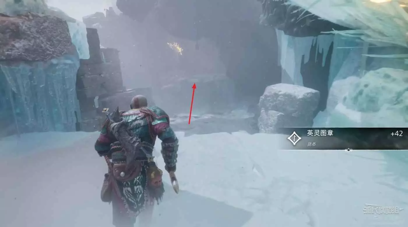 接著向前一直走,通過門進入下一個區域,來到阿斯加德庇護所,來到左前方的懸崖前,可以看到一個寶箱。