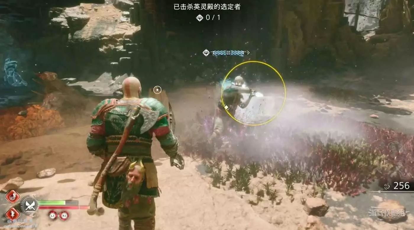 走出洞口後,向爬上右邊的高台與第一個選定者開始戰鬥。