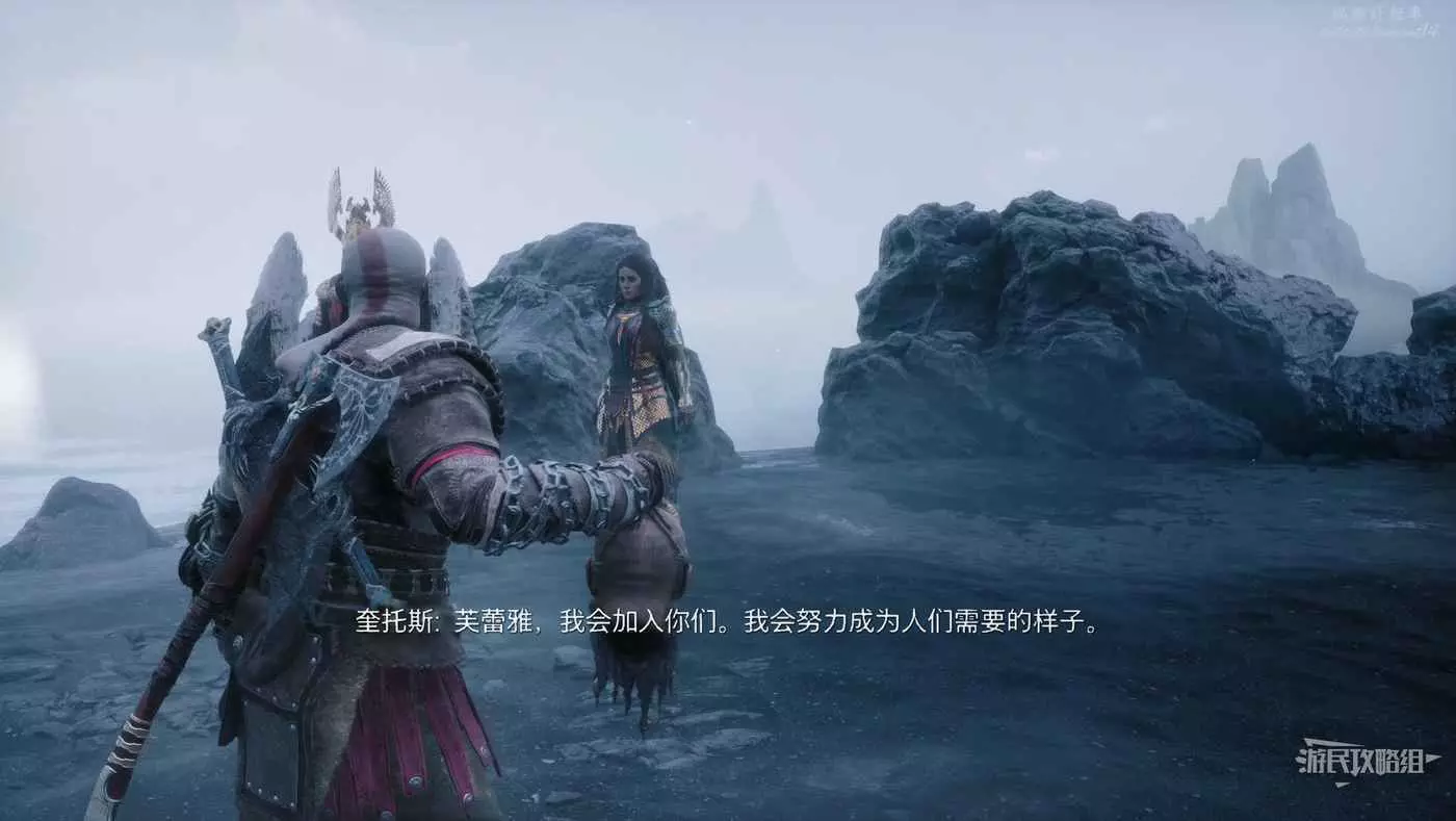 回到英靈殿外的海岸後,奎爺便告知了芙蕾雅要加入她,並向她們表示了感激,此時DLC的流程結束,但依然可以返回繼續挑戰英靈殿。