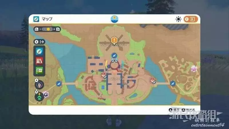 按Y打開地圖,然後按L/R即可返回帕底亞地區。初次前往北上鄉或藍莓學園後,即可隨時從地圖上切換帕底亞地區、北上鄉和藍莓學園。