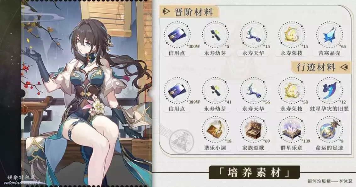 上方圖中為角色80級以及滿級天賦行跡所需,開拓者可自行按此進行收集