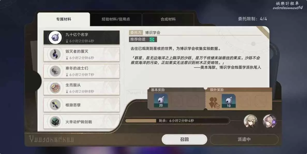首先,光錐的材料類型實際和角色行跡所需材料相同,但是實際需求並不多,額外多刷取一些即可,並且不同的怪物掉落材料完全可以互相轉換減少刷取壓力,因為我們每日委託刷取的原因,有一些材料是大量溢出的,轉換才更有性價比。但徐亞主要角色晉階的材料儘量不要轉換,因為那是我們用“體力”刷取的,兌換折損虧太多了。