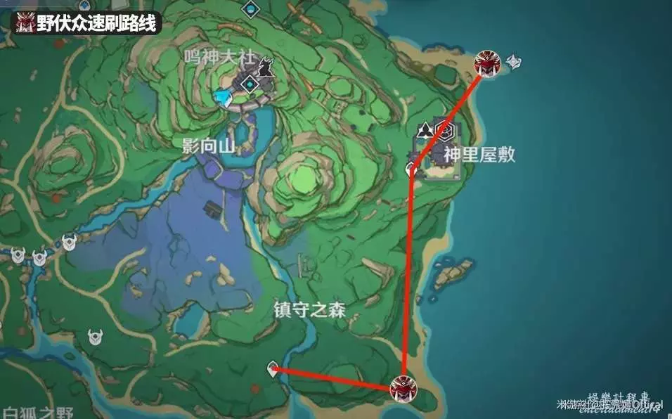 ④當隊伍中存在五郎時,將會在小地圖標註稻妻區域特產位置。