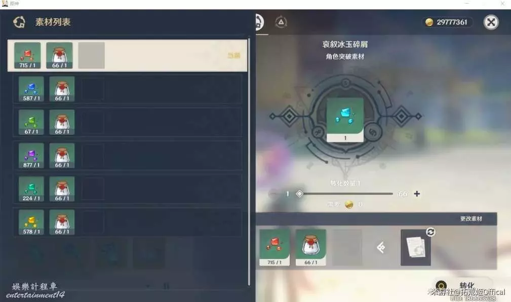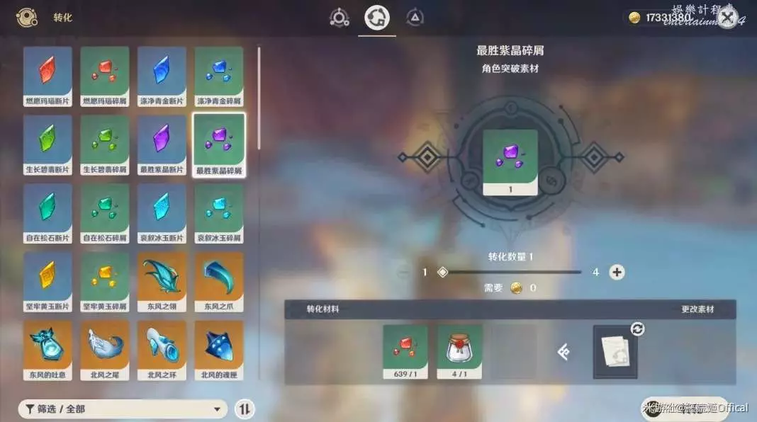 2)在合成台通過消耗一定的材料轉化獲得【轉化材料如下圖所示】
