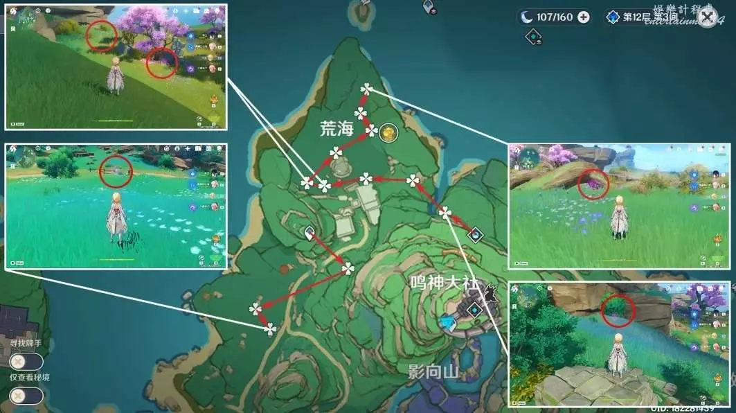 原神 (Genshin Impact) 神裡綾華突破材料收集指南 18 12 月 2023-12-18 廣告 作者:祈鳶ya 來源:米遊社 風雅系列天賦材料 位於堇色之庭秘境,每週的二/五/日 緋櫻繡球收集路線 1,隊伍中需要攜帶雷元素角色攻擊繡球,雷法最佳 海亂鬼討伐路線