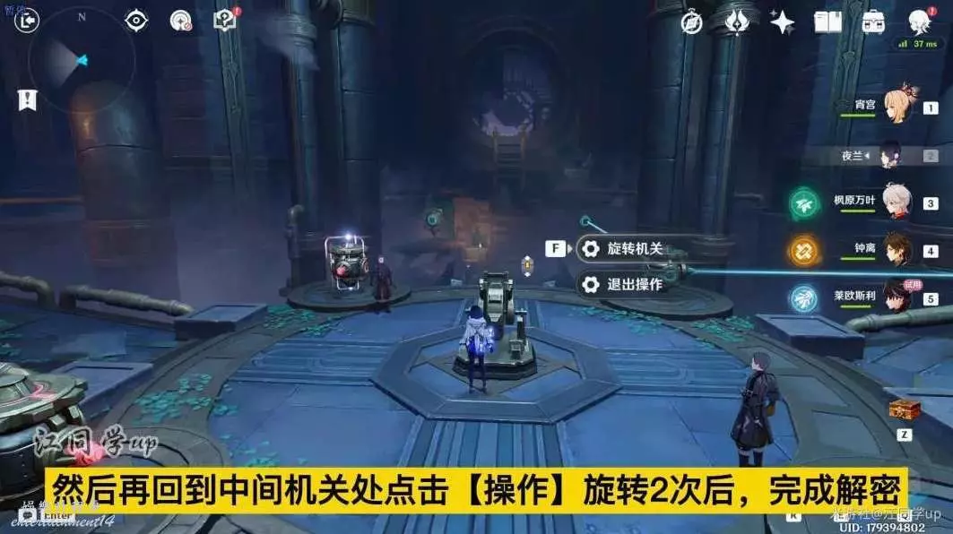 (12)第4處解密,先來到中間機關處點擊【操作】旋轉2次後,退出操作