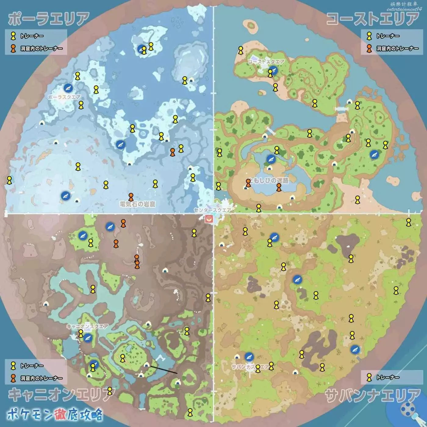 寶可夢 朱紫 (Pokemon Scarlet Violet) 藍之圓盤訓練家位置圖及招式機獎勵一覽 19 12 月 2023-12-19 廣告 作者:瑞破受氣包 來源:遊民星空 訓練家分佈位置地圖 地圖來自yakkun 擊敗訓練家獎勵 與每個區域休息站中的NPC交談,根據已經擊敗的訓練師數量,可以獲得招式機和BP點數。 草原區 與休息站2中的女生對話。 海岸區 與海岸休息站中的女生對話。 峽谷區 與峽谷休息站的女生對話。 極地區 與基地休息站的女生對話。