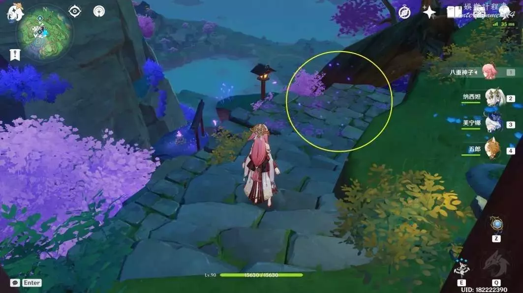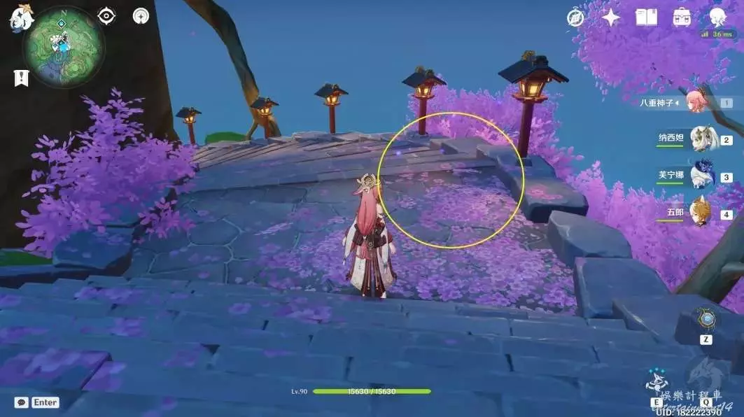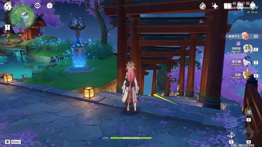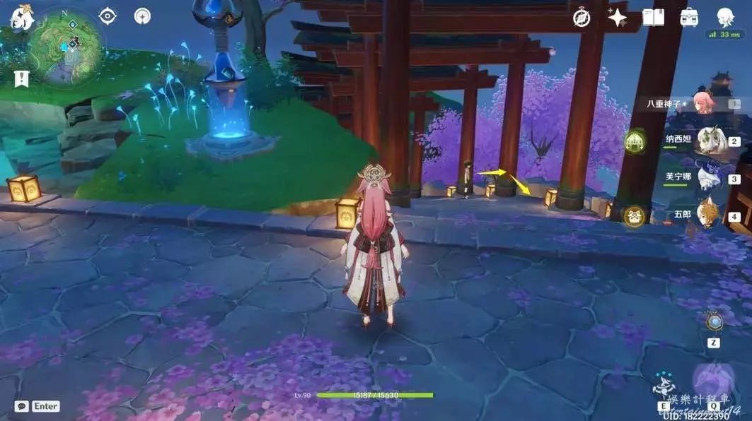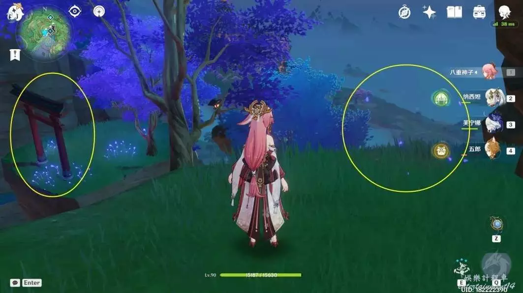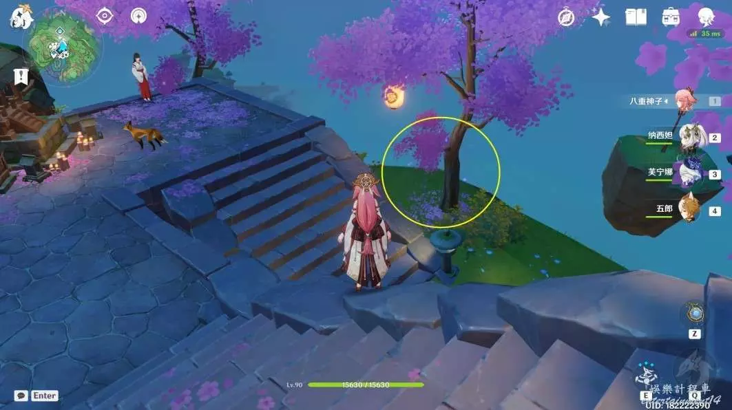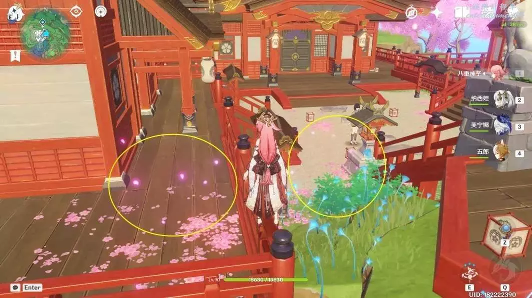(1號)鳴神大社傳送點.,轉東方向視角,前方神龕左邊有1個緋櫻繡球