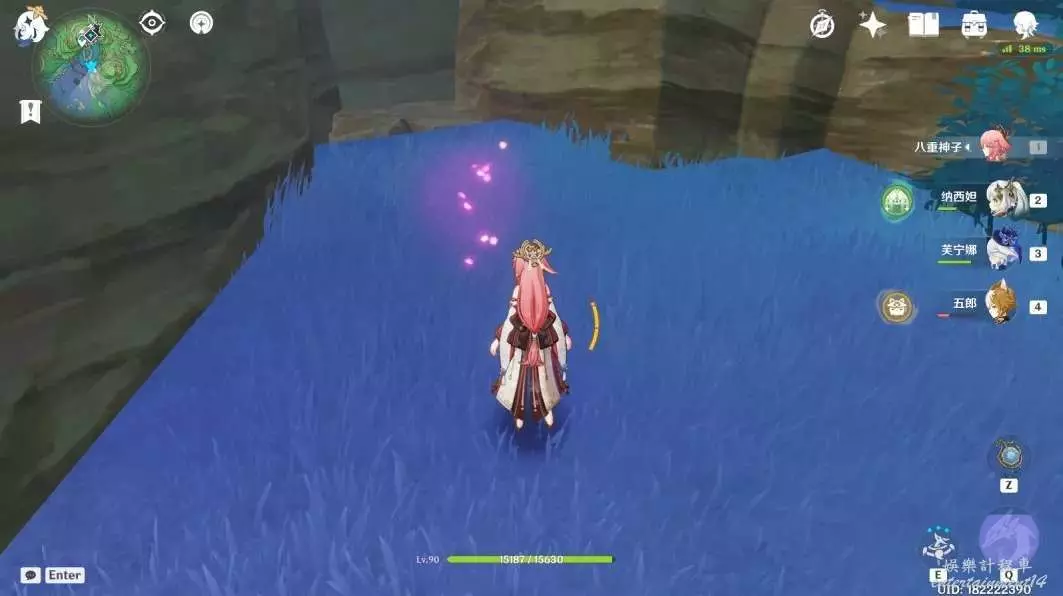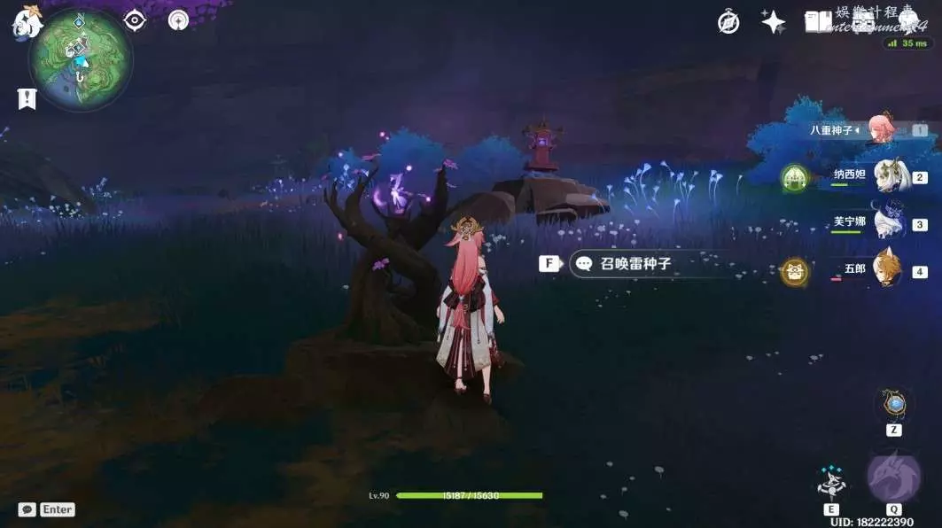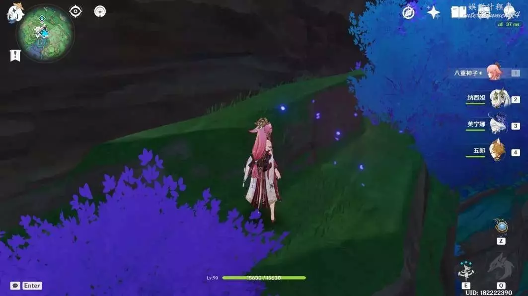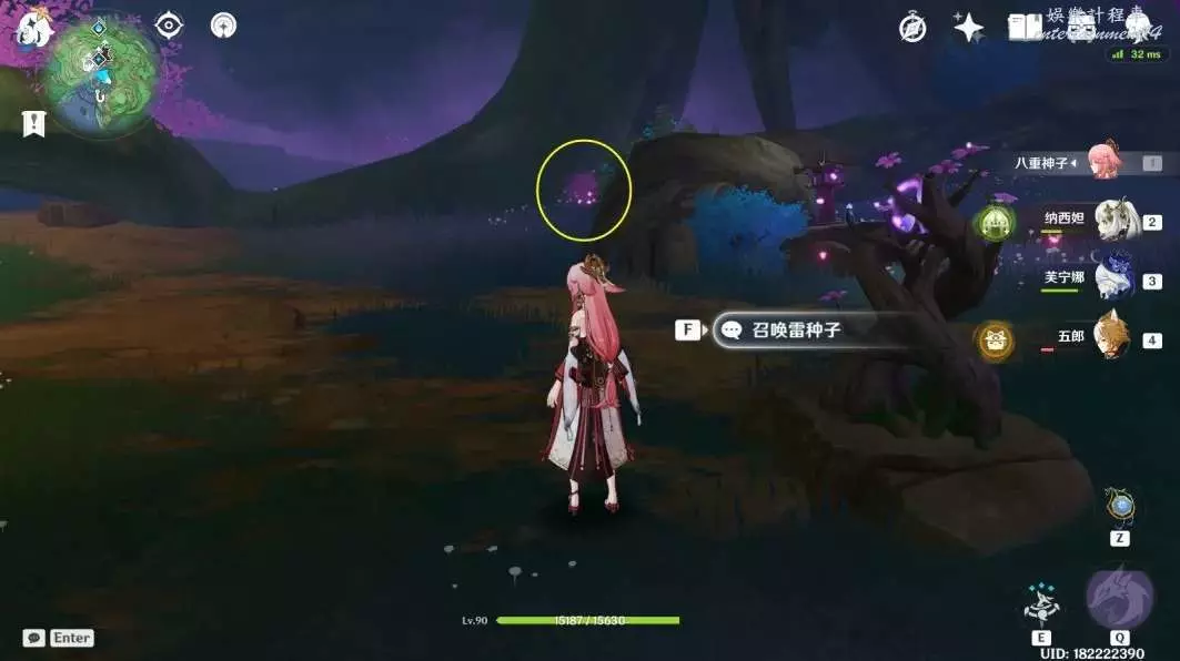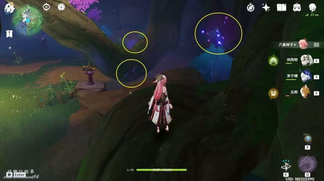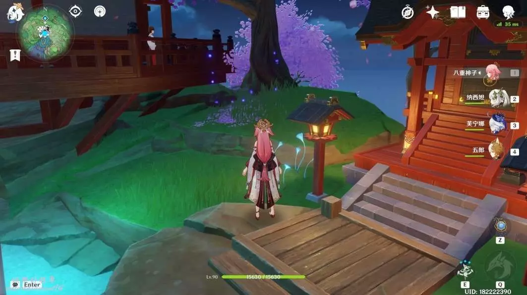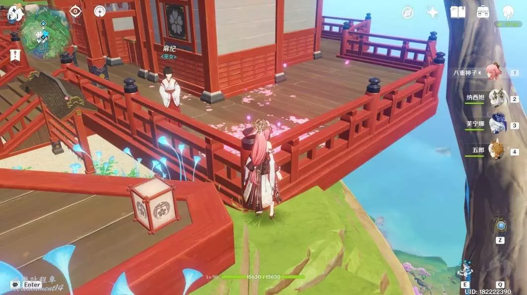 (1號)鳴神大社傳送點.,轉東方向視角,前方神龕左邊有1個緋櫻繡球