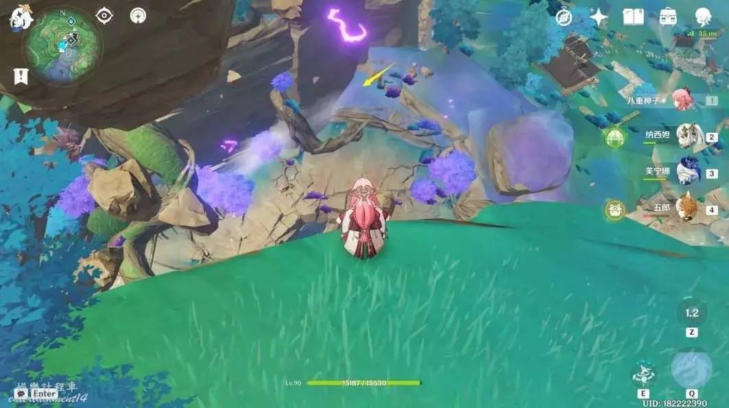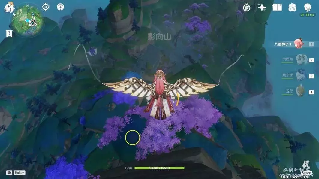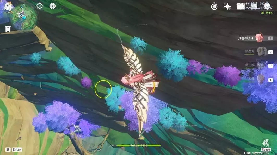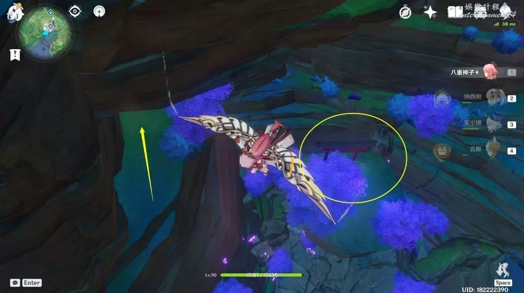 (36號)鳴神大社傳送點,轉東南方向視角,沿著石階走幾步,在NPC陸旁往山崖下跳下,緩慢降落回頭看