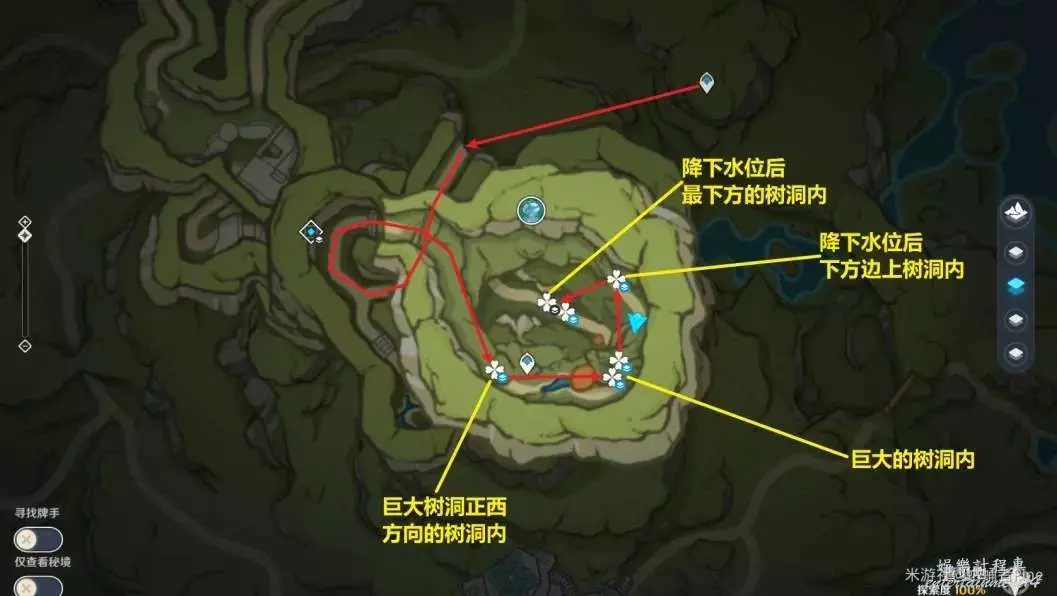 從上面第6個點位繼續前進,進入下一層,注意都位於樹洞內。