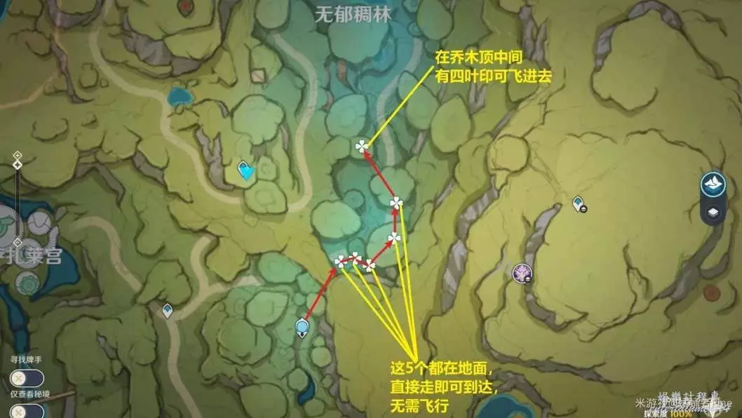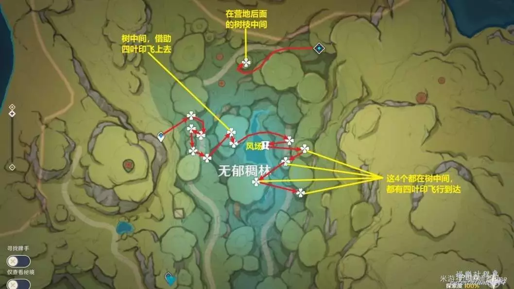 距離錨點近,可快速採集,注意最後一個在樹枝中間(四葉印飛上去)