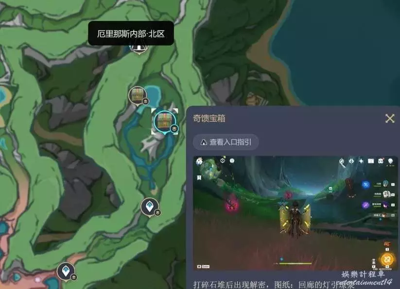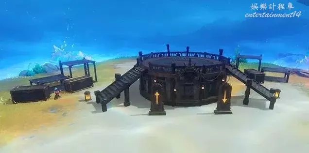 1、在圖片棕色船體上與一個女性對話並打開洞口,繼續深入解密仙靈後向下通過洋流獲得寶箱。