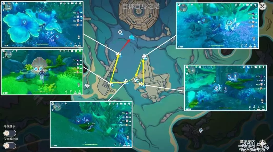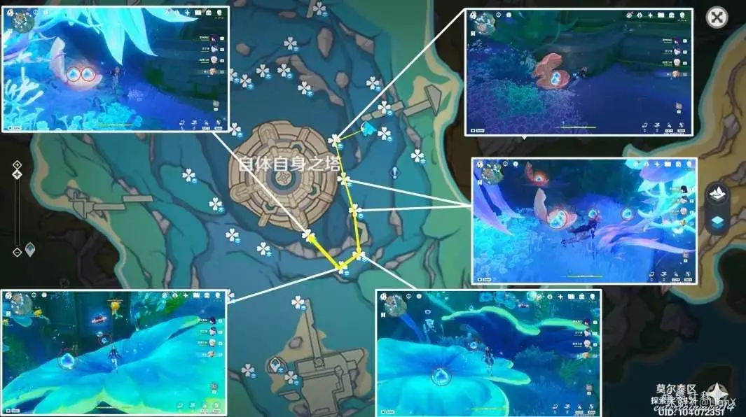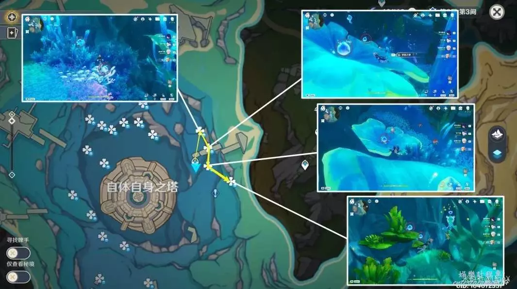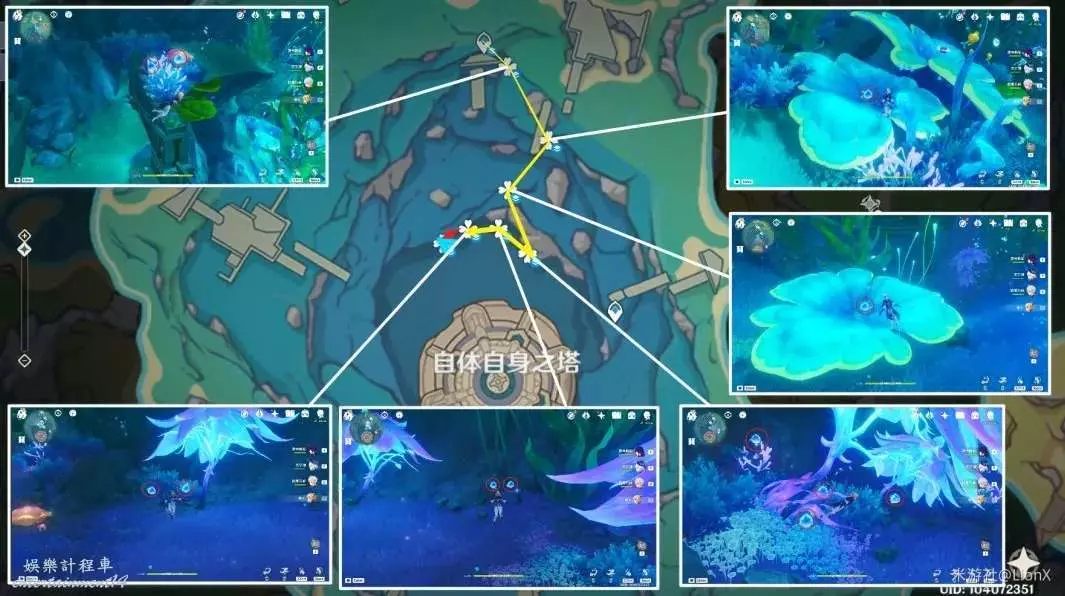 原神 (Genshin Impact) 娜維婭突破材料初露之源採集攻略 20 12 月 2023-12-20 廣告 作者:LionX 來源:米遊社論壇 這裡是初露之源的採集路線攻略,全圖採集共計74個。目前是娜維婭的突破材料。初露之源全部都分佈在自體自身之塔的周圍,是很集中的。 刷新時間48小時 路線一 自體自身之塔上半①·12個 路線二 自體自身之塔上半②·16個 圖中白圈區域部分集中分佈8個,注意不要遺漏了 路線三 自體自身之塔下半·12個 路線四 自體自身之塔左半·12個 路線五 自體自身之塔右半①·7個 路線六 自體自身之塔右半②·15個 部分位於貝殼中,需要打一下貝殼。