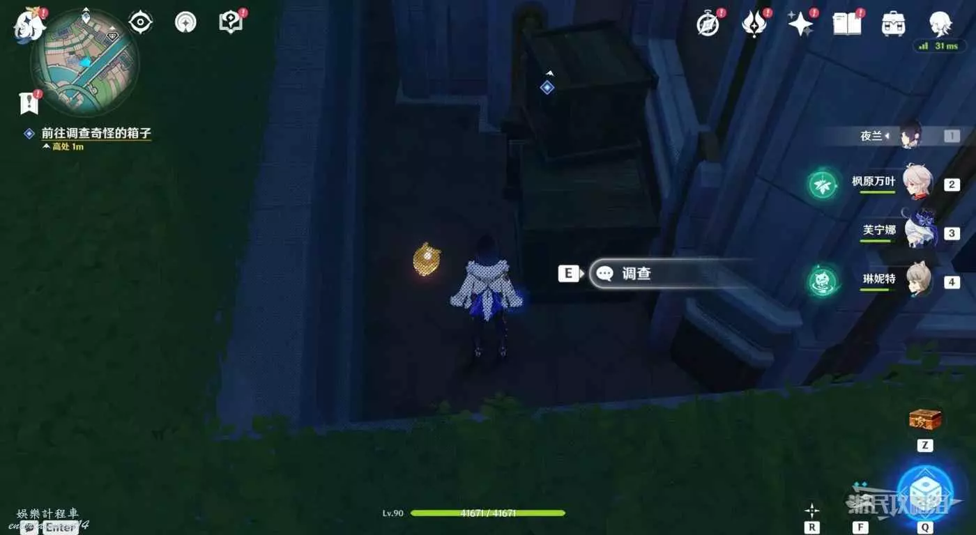對話完畢後,繼續調查屋後的箱子,觸發對話。對話完畢後任務完成。