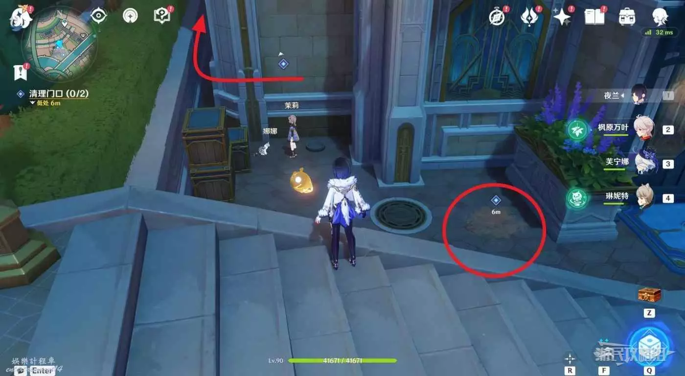 對話結束後,直接前往水道樞紐乘坐娜維婭線。可以傳送到楓丹廷右下角傳送錨點再跑過去。