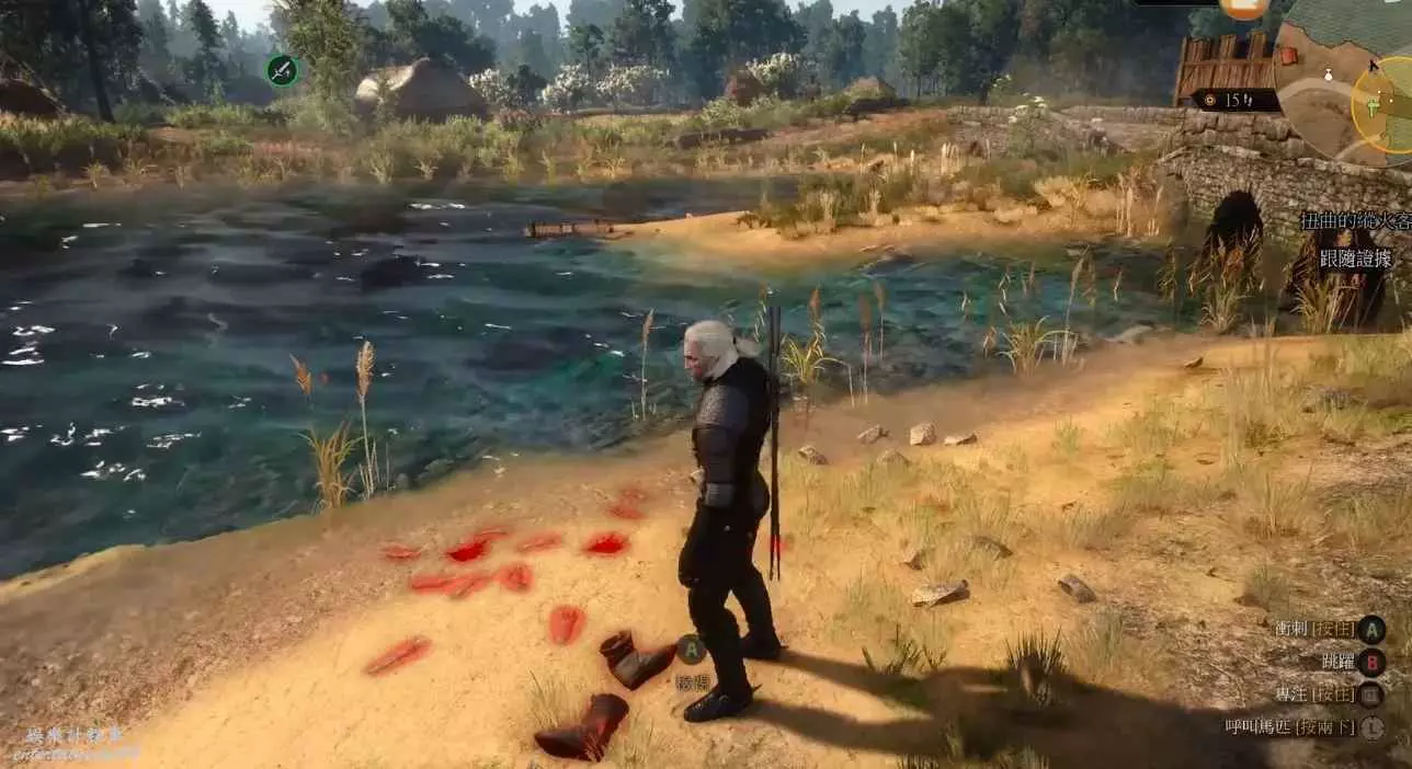 2.任務技巧解析河岸邊發現的血跡注意調查,這裡可獲取關鍵資訊,縱火的人受到了水鬼的進攻而受傷。
