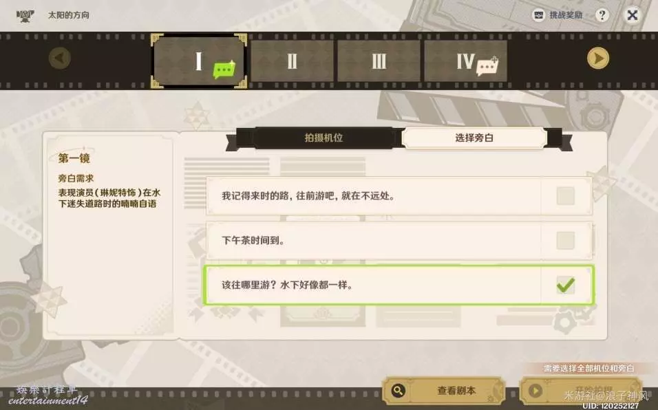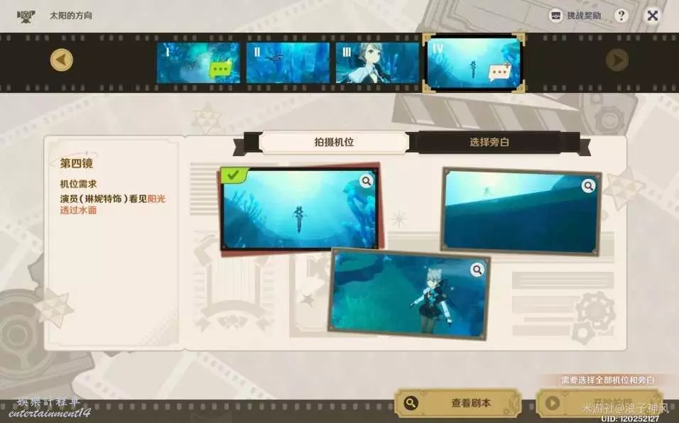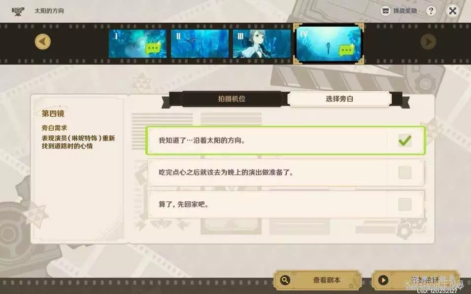 不得不說,這期的活動,都滿有新意的。這個新活動,就是給你當導演的感覺。根據提供的劇情,自己選擇拍攝的畫面,和對應的旁白,獲得最高的積分完成活動。具體的如何選擇,見我下面的圖片指引即可哦。
