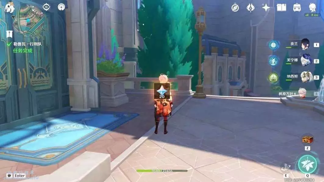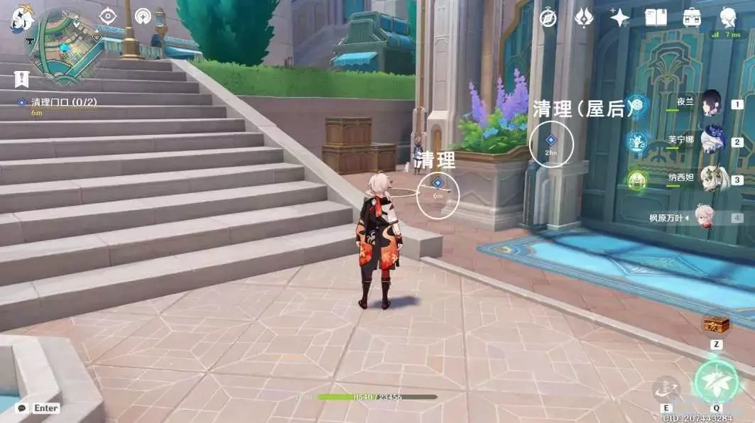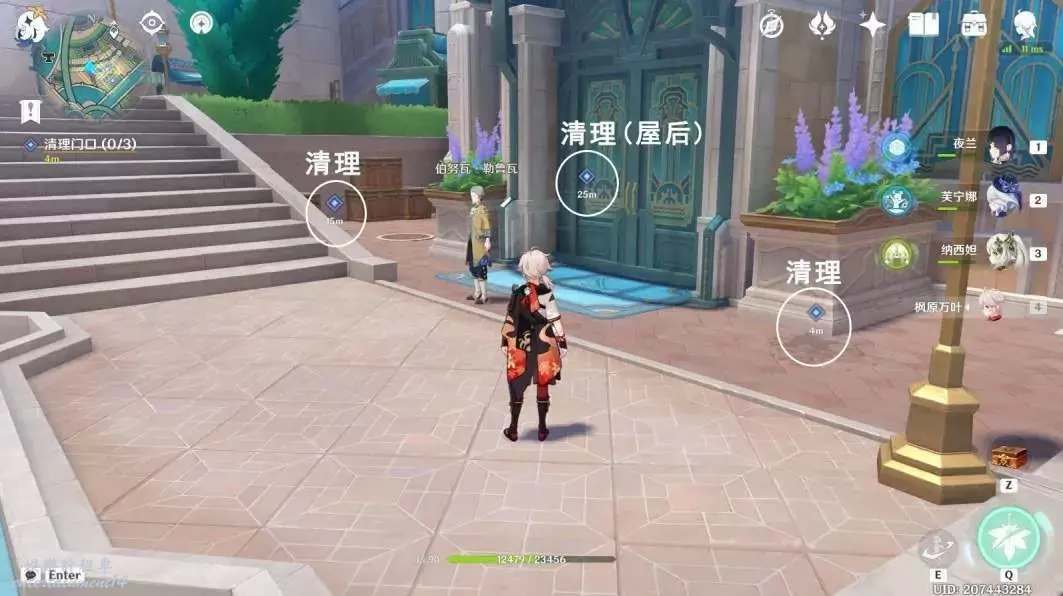 切換水元素角色(芭芭拉),前往3個清理位置攻擊
