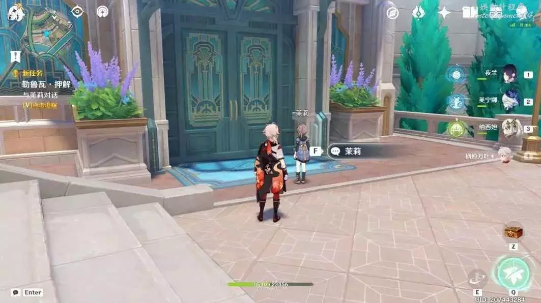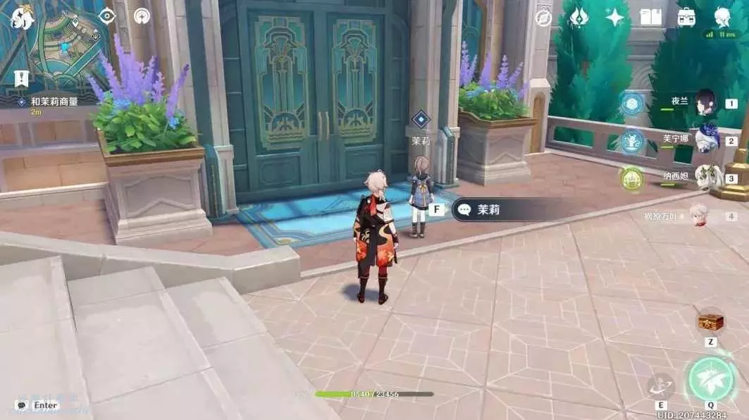 傳送楓丹廷東北方向錨點,往地圖的西南方向走,與茉莉對話