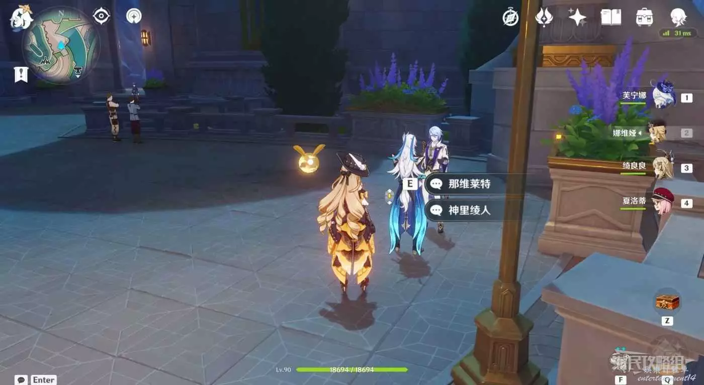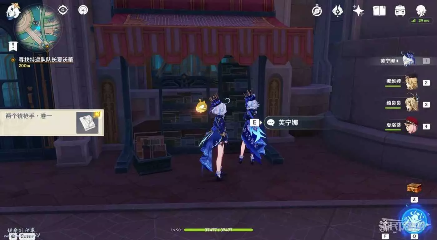 原神 (Genshin Impact) 4.3薔薇與銃槍活動彩蛋位置整理 21 12 月 2023-12-21 廣告 作者:瑞破受氣包 來源:遊民星空 完成任務1劃破寧靜的槍響後 兩個銃槍手·卷一 從楓丹廷博蒙特工坊(地圖上楓丹廷鍛造台標誌)旁邊,芙寧娜所在位置對面的書架上可以拾取到這次所拍劇本的原版小說【兩個銃槍手·卷一】。 千織位置 神裡綾人、那維萊特位置 神裡綾華、宵宮位置