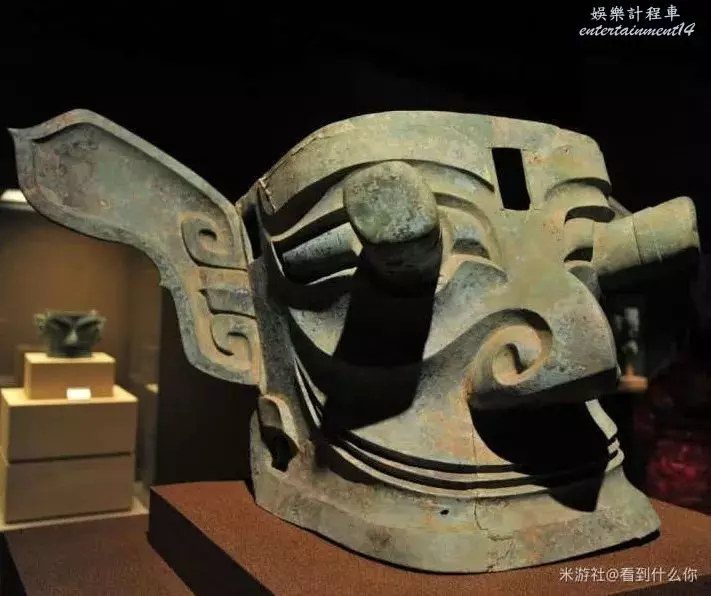 這個面具這樣放在圖上看起來沒多大,但其實它是目前三星堆最大的幾件青銅器之一,高0.66米,寬1.38米。
