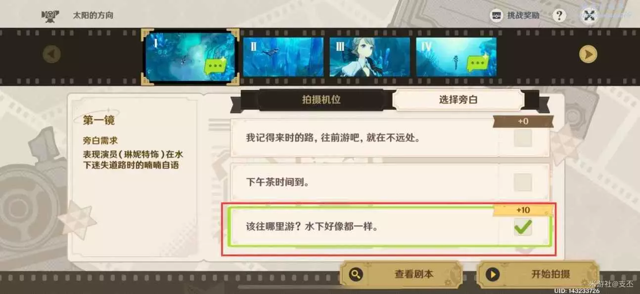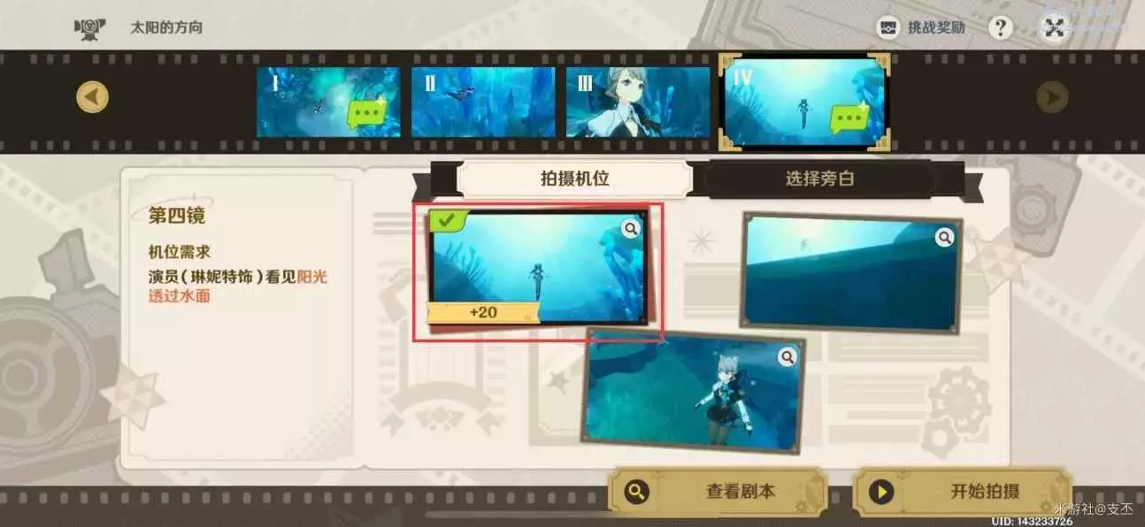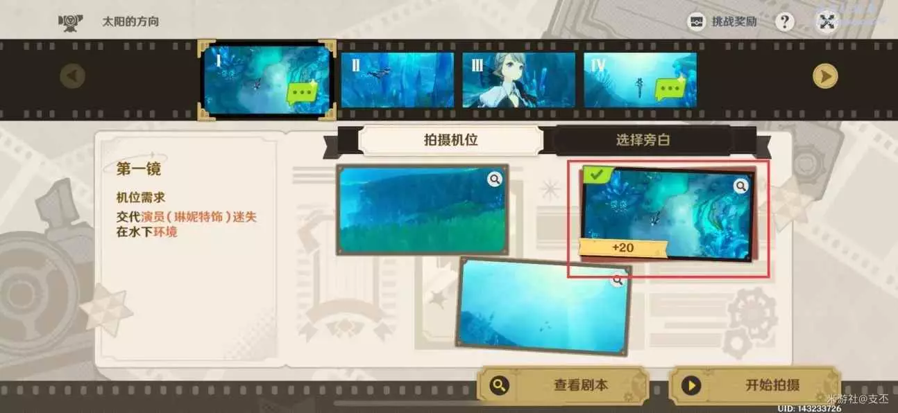 拍攝機位“選擇第三個鏡頭”,評分+20