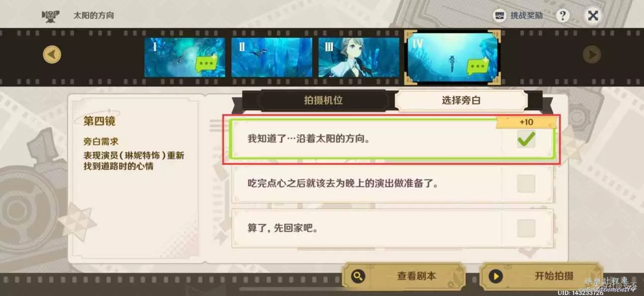 後面會根據實際拍攝與導演需求的貼合程度,進行評分,選擇不同,會獲得不同的評分