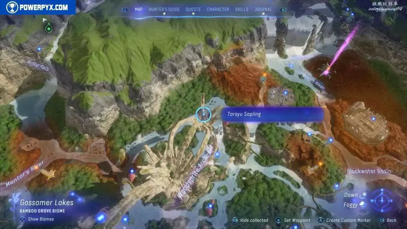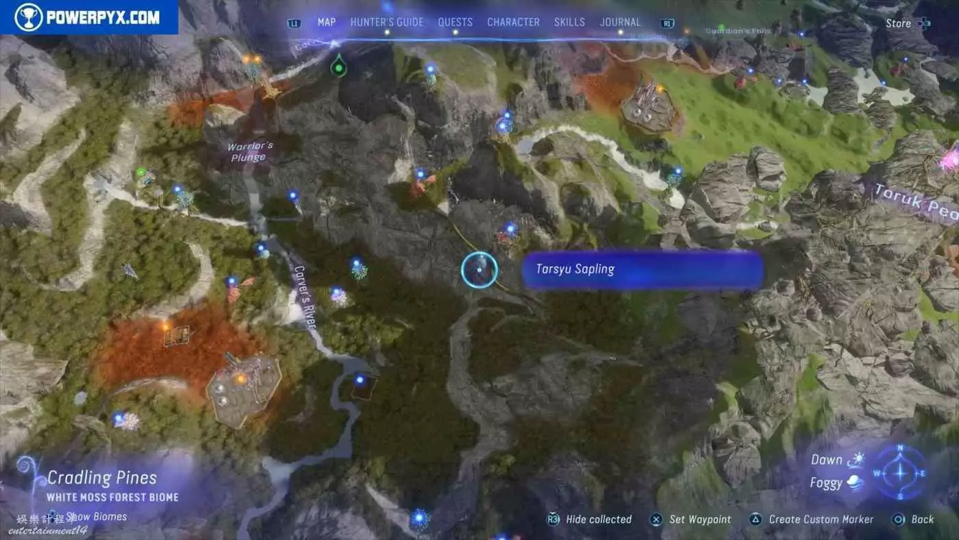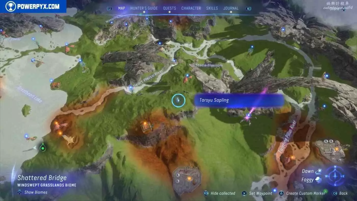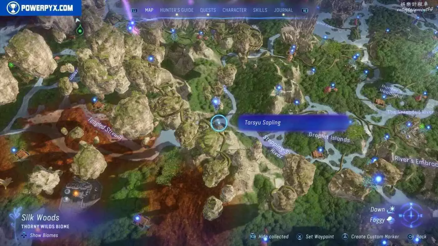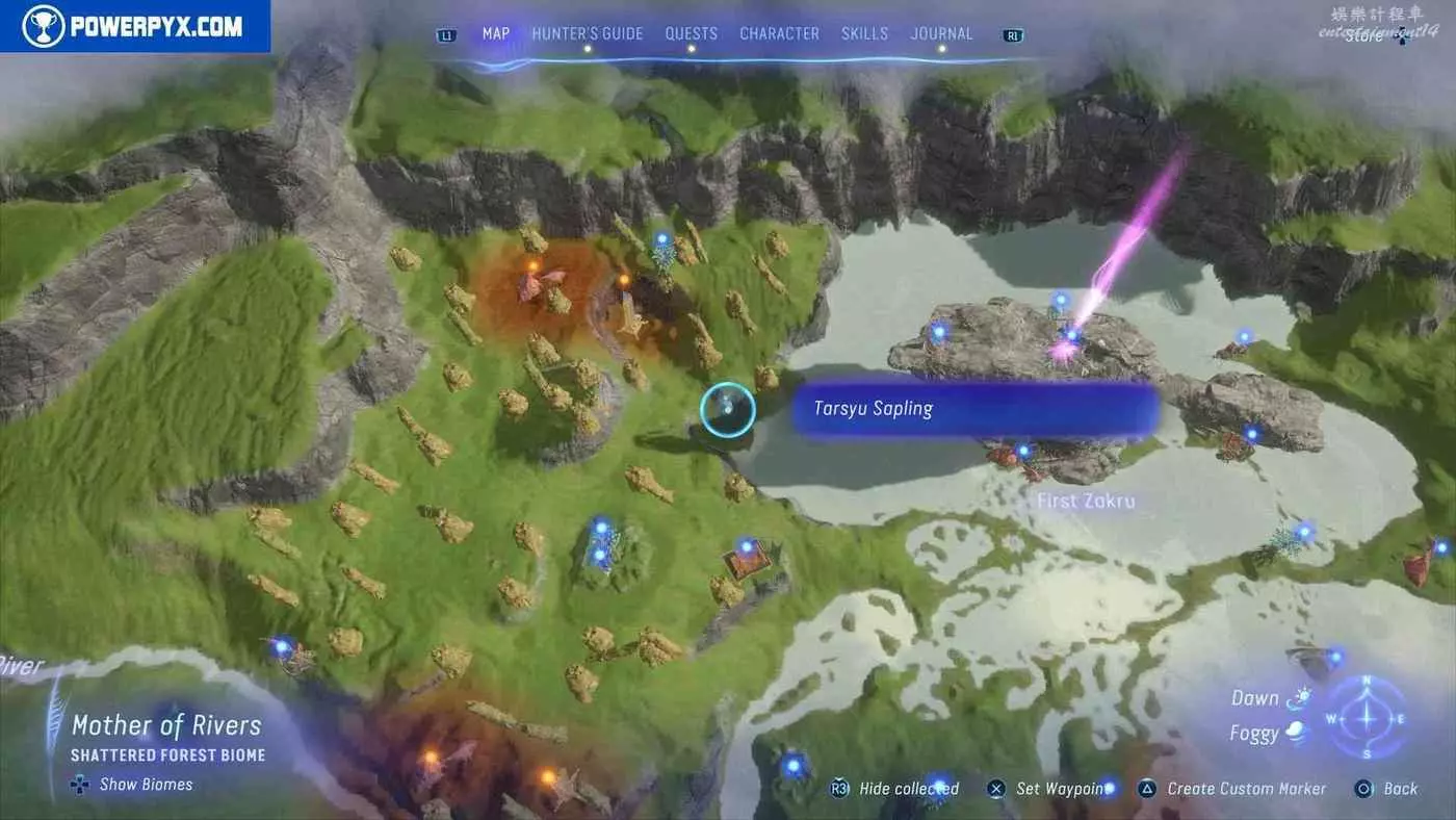 建議先在主線任務11【振翅翱翔】期間解鎖飛行坐騎並通關主線,然後再快速飛往地圖的各個區域,所有的塔休幼苗都不用擔心遺漏,通關主線後都可以重新自由探索並收集。污染區域(地圖上棕色區域)內的塔休幼苗只有在攻破附近的RDA據點後才會出現。