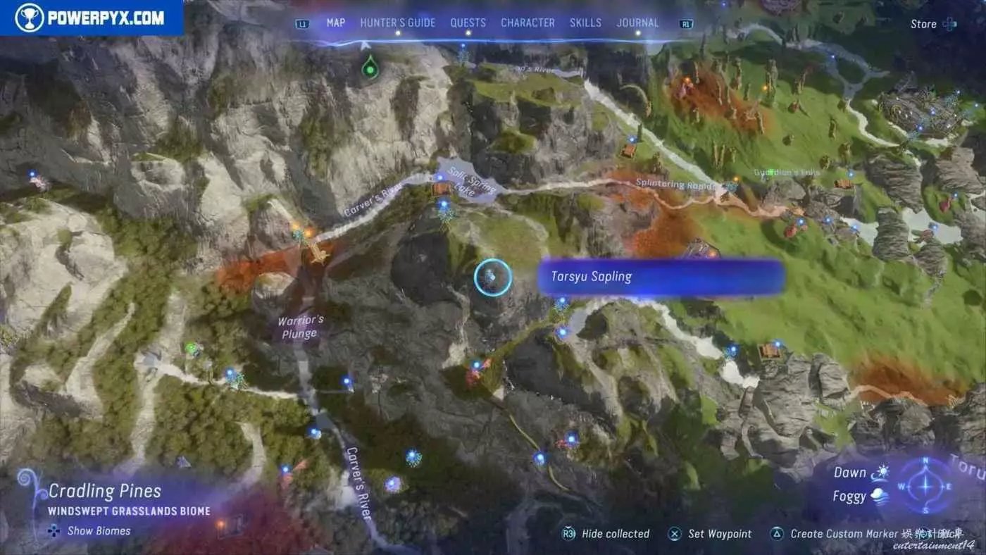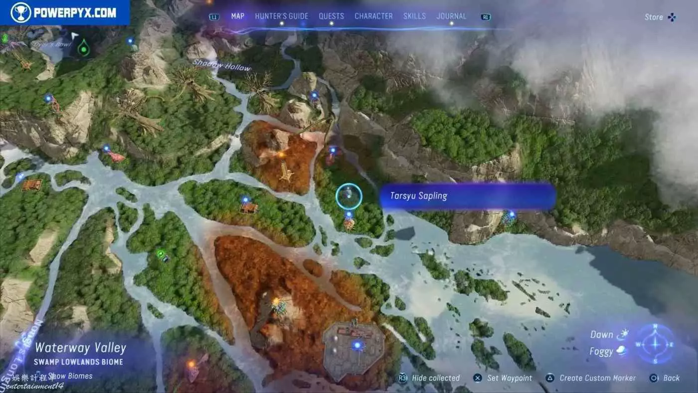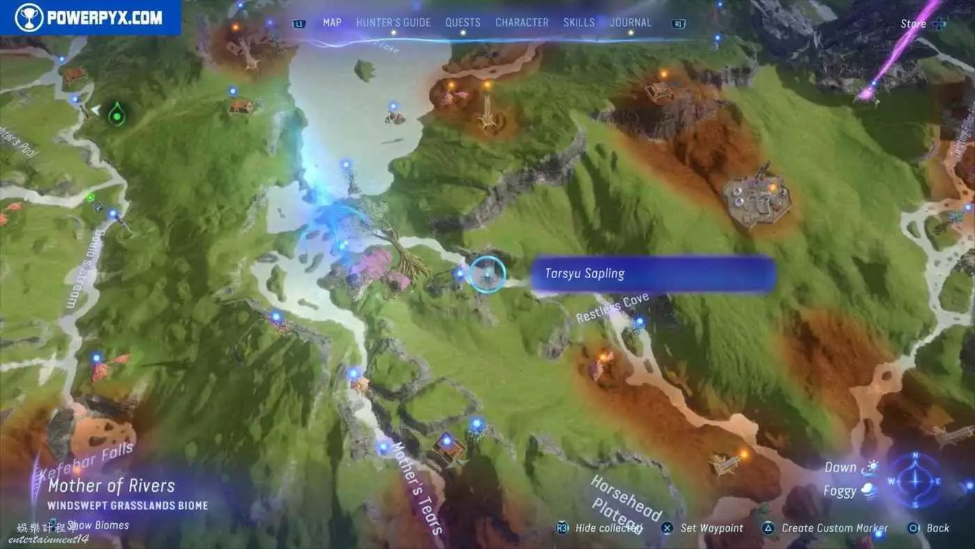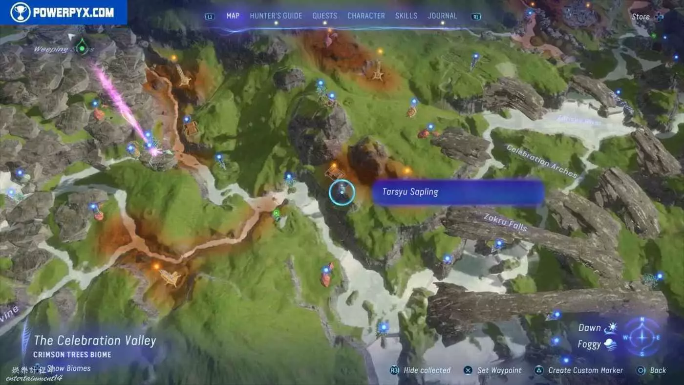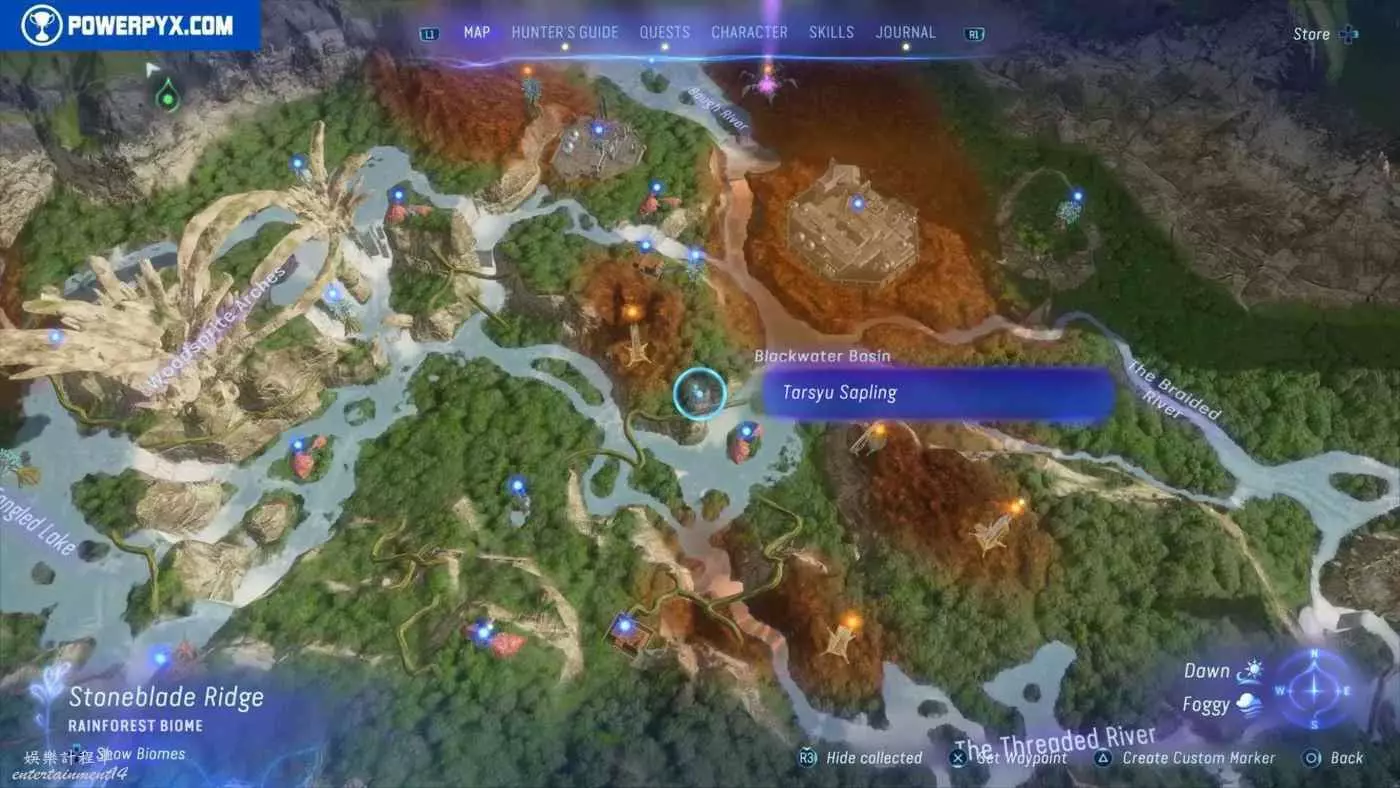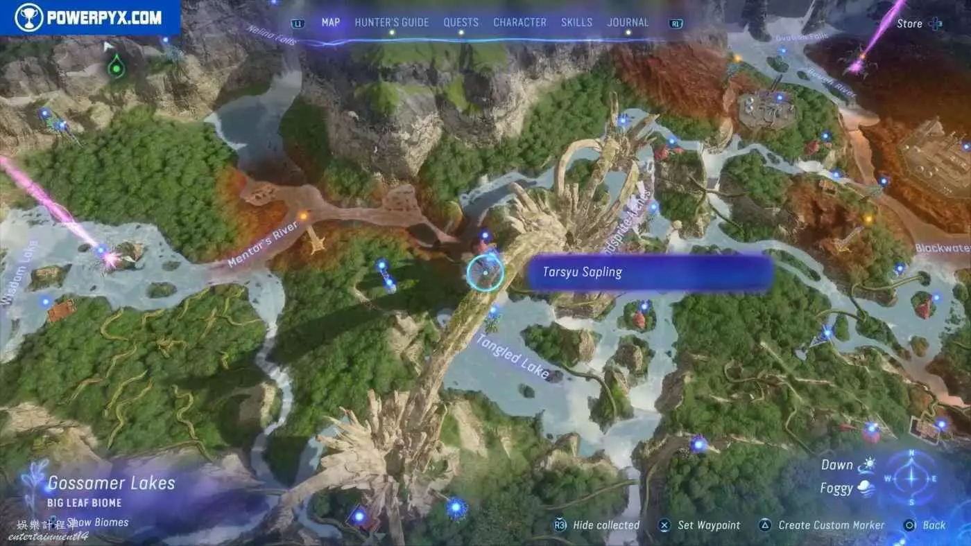 建議先在主線任務11【振翅翱翔】期間解鎖飛行坐騎並通關主線,然後再快速飛往地圖的各個區域,所有的塔休幼苗都不用擔心遺漏,通關主線後都可以重新自由探索並收集。污染區域(地圖上棕色區域)內的塔休幼苗只有在攻破附近的RDA據點後才會出現。