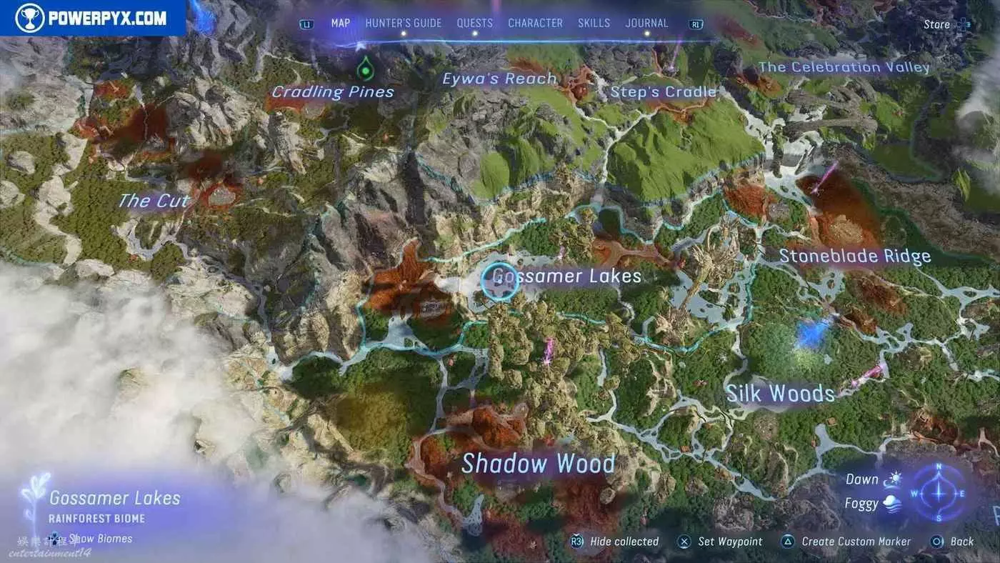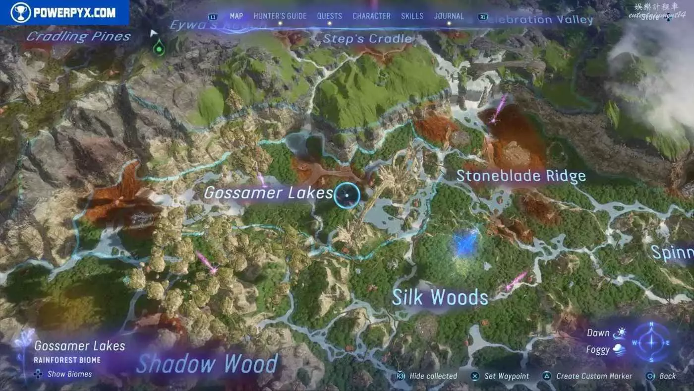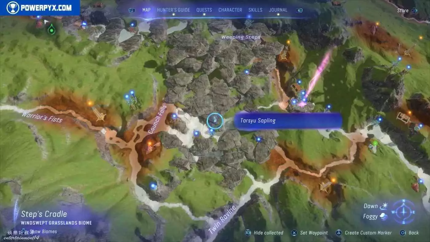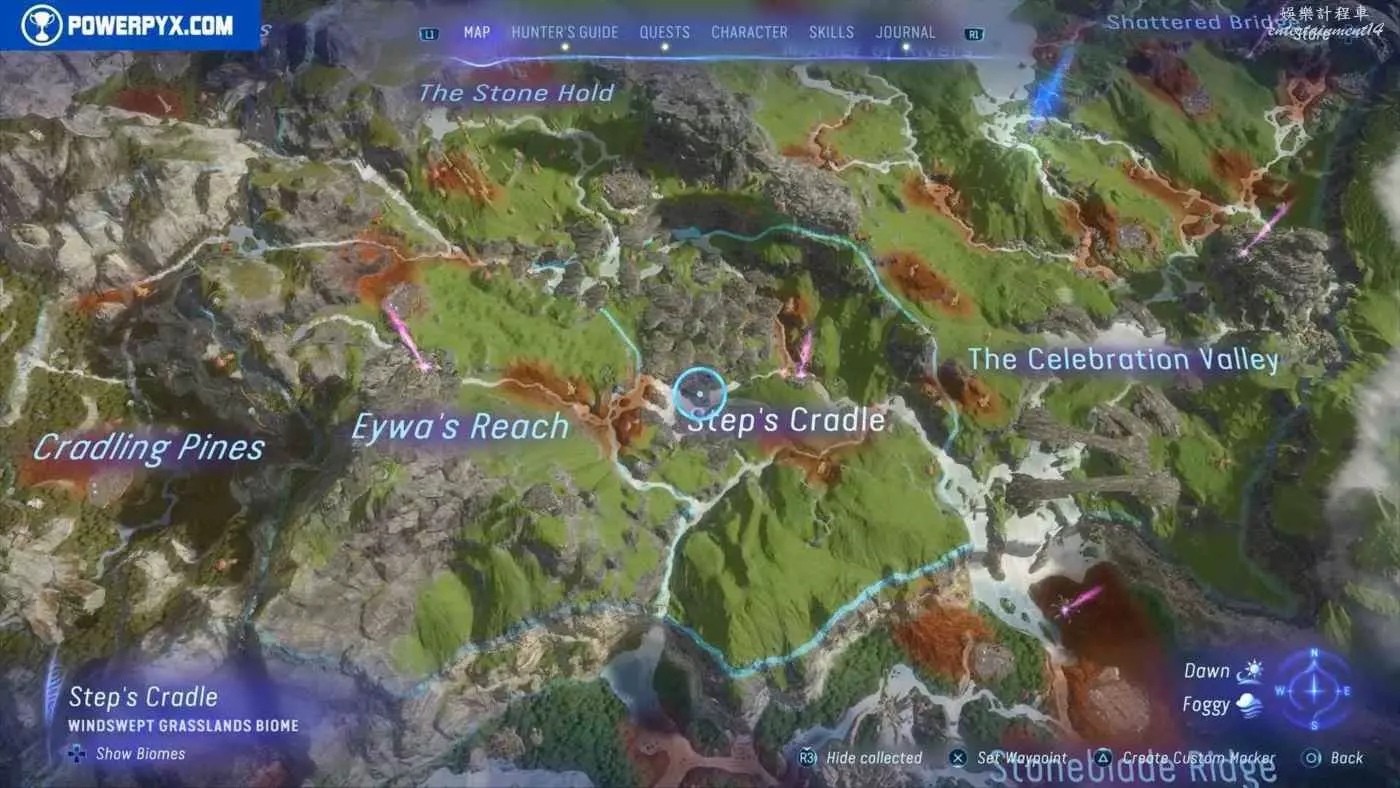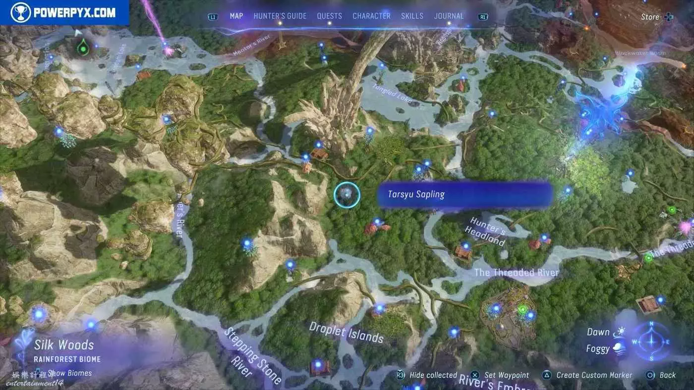 建議先在主線任務11【振翅翱翔】期間解鎖飛行坐騎並通關主線,然後再快速飛往地圖的各個區域,所有的塔休幼苗都不用擔心遺漏,通關主線後都可以重新自由探索並收集。污染區域(地圖上棕色區域)內的塔休幼苗只有在攻破附近的RDA據點後才會出現。