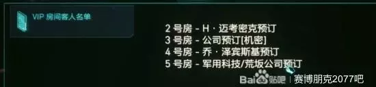 從監控室電腦裡可以了解到,二樓VIP區域的安保十分的嚴格,我們上去被安保看見就會觸發警報,從名單上也可以找到澤賓斯基在4號包廂裡,最後把局域網裡面的監控關了,再打開VIP大門就行了。