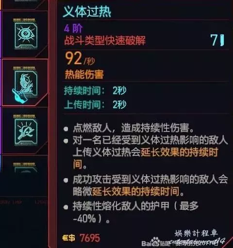 義體過熱則在原有基礎上多了減甲效果。要知道,智慧槍械傷害拉跨的主要因素就是缺乏破甲,對重甲敵人打不出傷害。但義體過熱徹底改變了這一點,不但減甲,還能增傷,把刮痧變為刮骨。