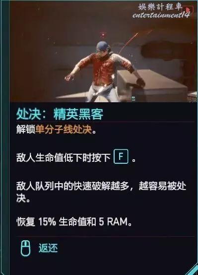 而對於不想玩智慧槍的玩家,我建議完全放棄在智慧槍技能樹上投入點數,屬性方面點20肉體15反應。單分子線配合阻礙移動打處決的效率非常高,哪怕放棄了智慧槍續航也完全不是問題。配合反應系給的突進你完全可以做一個來去如風的近戰殺手,只是注意不要將自己暴露在大批敵人的火力之中,要先用破解將敵人的數量壓下來,再利用處決無敵時間沖陣。利用“逃兵”和連帶傳染配合疊滿半傷後,哪怕失誤你也有足夠的硬度在人堆裡存活一段時間。