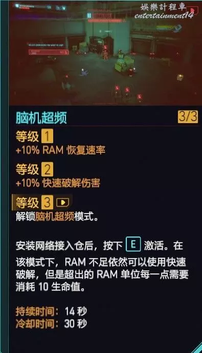 而當你解鎖了智力15級的技能與4階破解時,黑客流的恐怖之處才開始真正顯露出來。首先,駭客終於解鎖了腦機超頻: