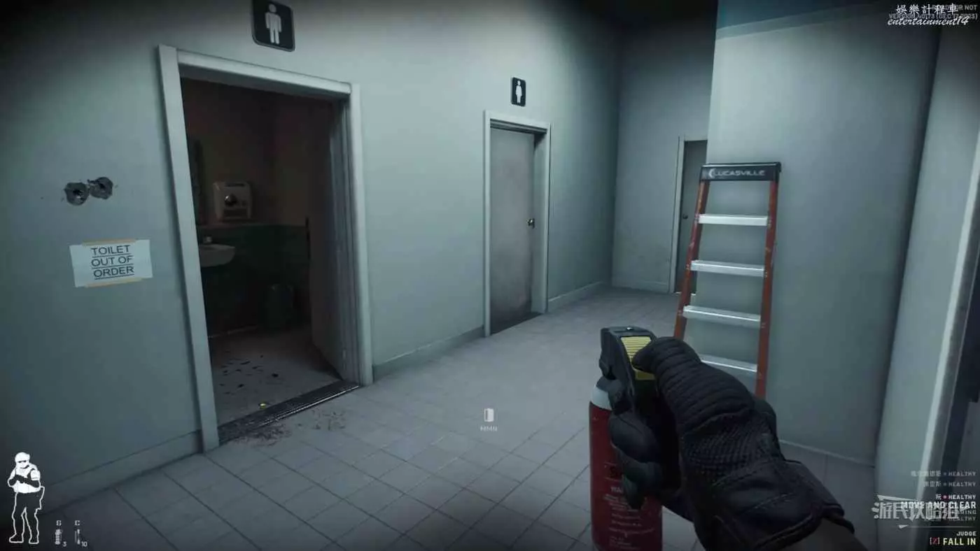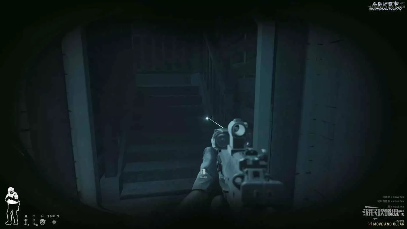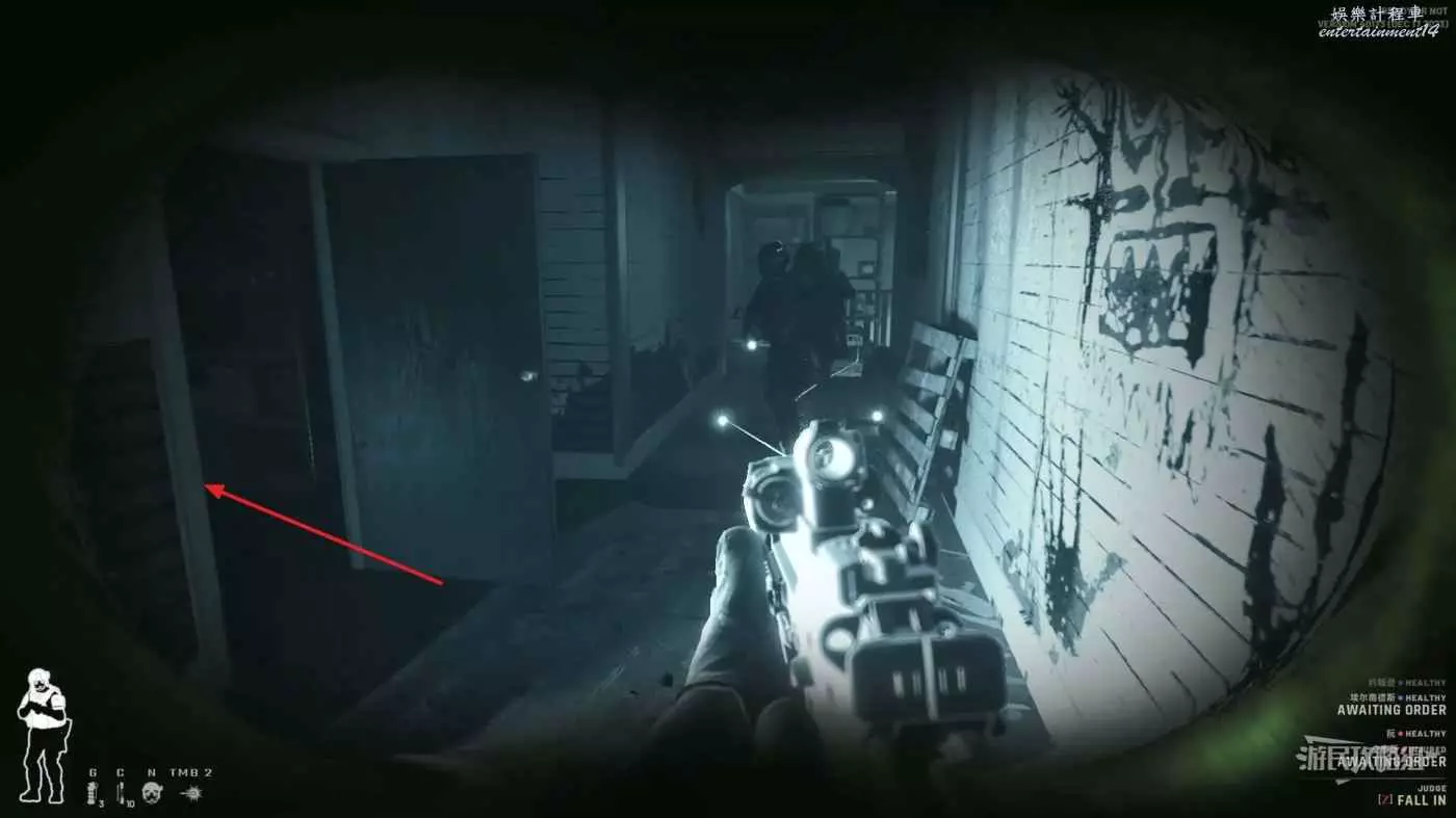 1樓的空間更大,也意味著被多名敵人同時攻擊的風險增大,如果是多人遊戲建議讓其他隊友嘗試從大門同時突入。