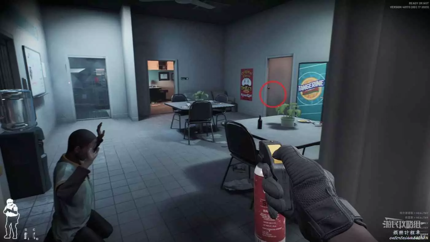 剩餘的兩個重要人物都在中心位置,而且此處位置狹窄比起槍來說胡椒噴霧更為好用。